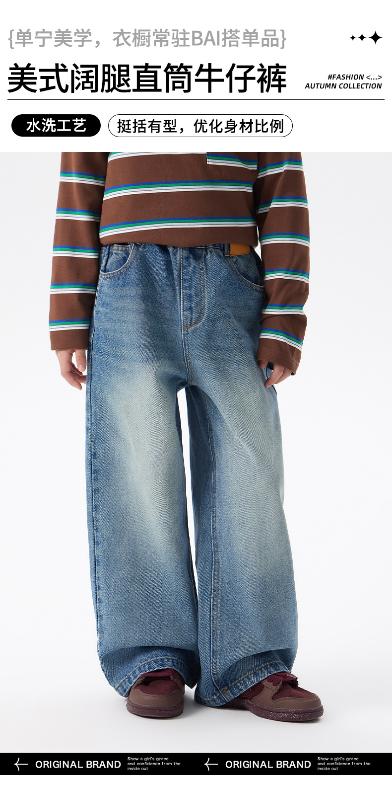아동 캐주얼 바지 2026 가을 신상 여아 한국 스타일 멋진 청바지 중대형 아동 가을 청바지