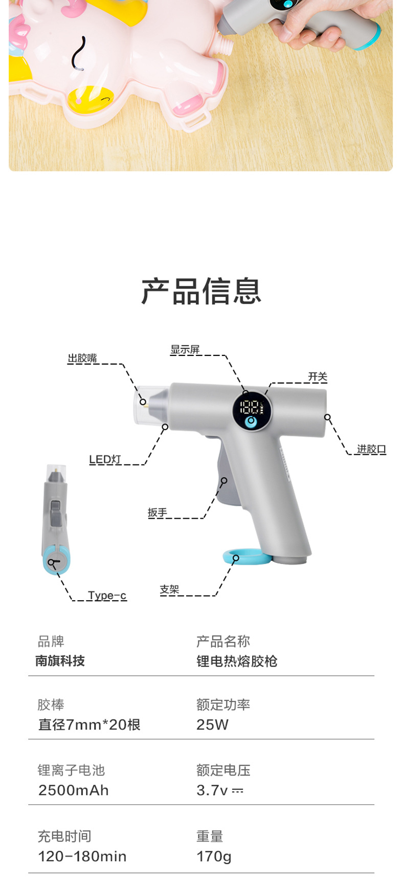 디지털 리튬 배터리 핫 멜트 접착제 총 수제 어린이 가정용 높은 점도 핫 멜트 접착제 스트립 작은 충전식 접착제 총