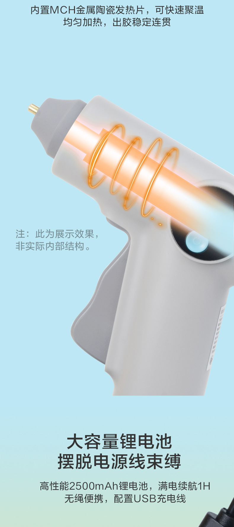 디지털 리튬 배터리 핫 멜트 접착제 총 수제 어린이 가정용 높은 점도 핫 멜트 접착제 스트립 작은 충전식 접착제 총스토어 가기