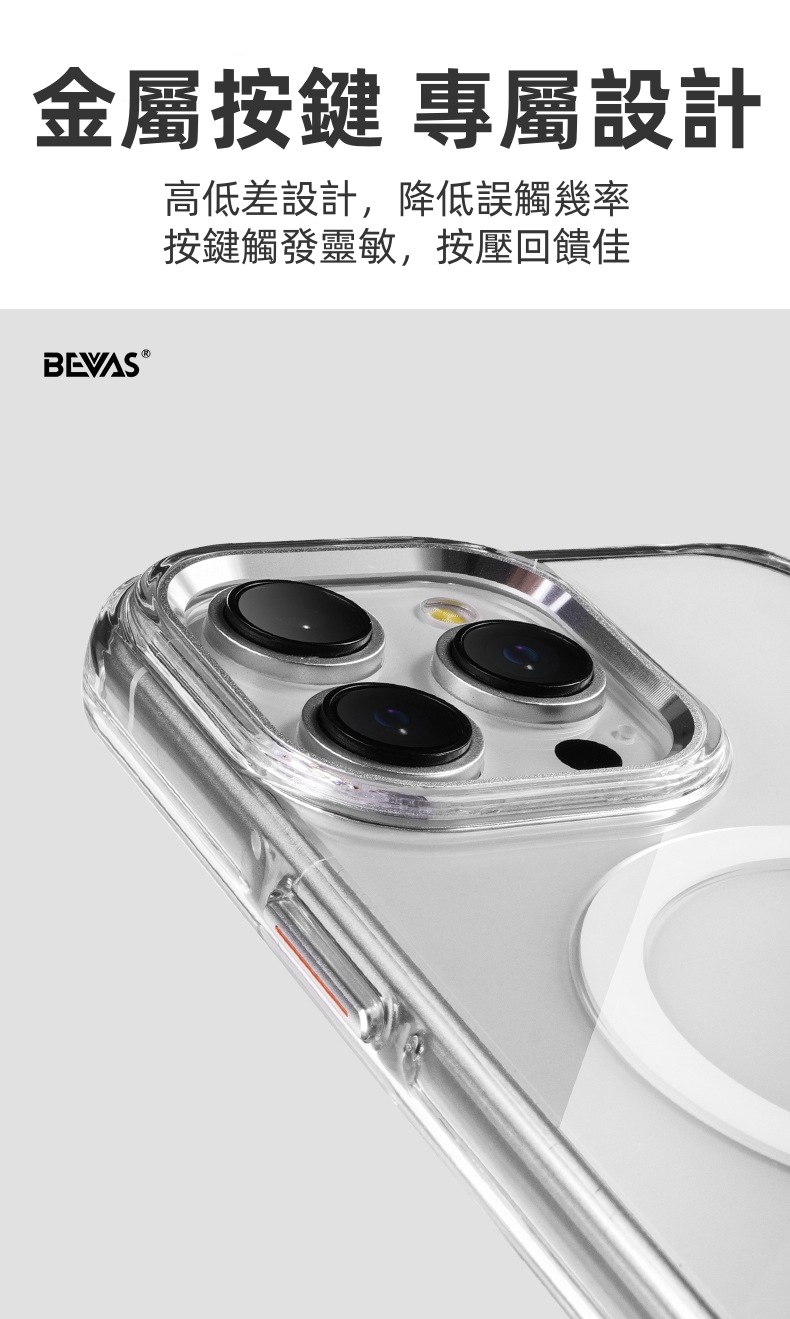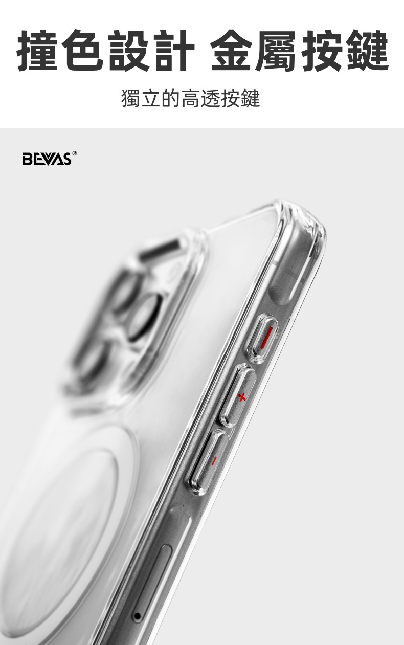 BEVAS Apple 17 투명 휴대폰 케이스는 iPhone 17pro 금속 버튼 Magsafe 케이스에 적합하며 노란색으로 변하지 않습니다.