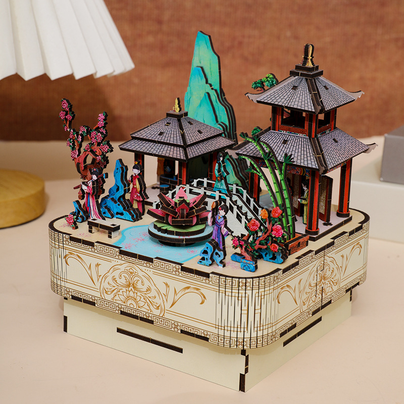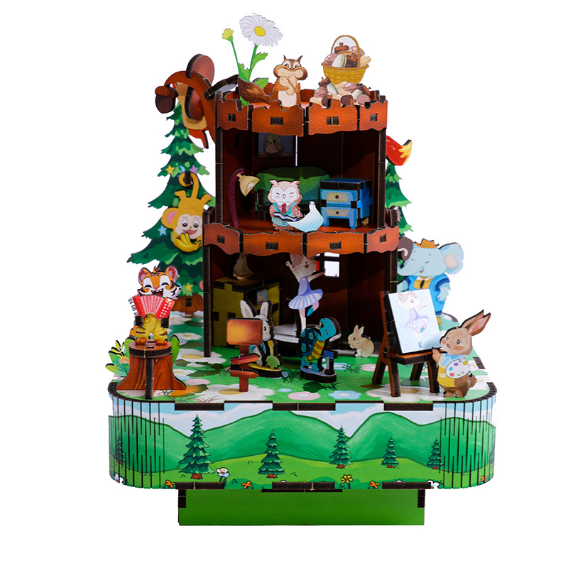 Mangyang 크리 에이 티브 나무 조립 뮤직 박스 가든 파티 DIY 수제 뮤직 박스 장난감 생일 선물 빌딩 블록
