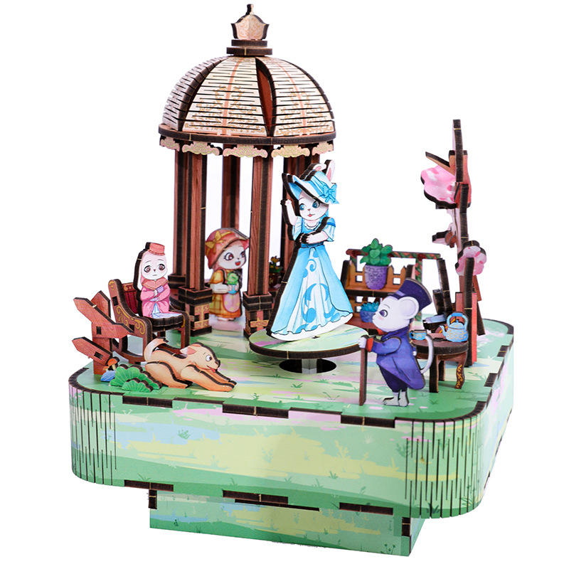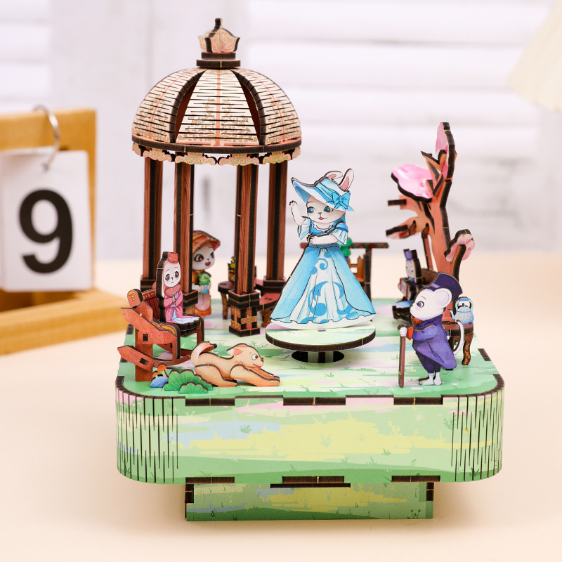Mangyang 크리 에이 티브 나무 조립 뮤직 박스 가든 파티 DIY 수제 뮤직 박스 장난감 생일 선물 빌딩 블록스토어 가기