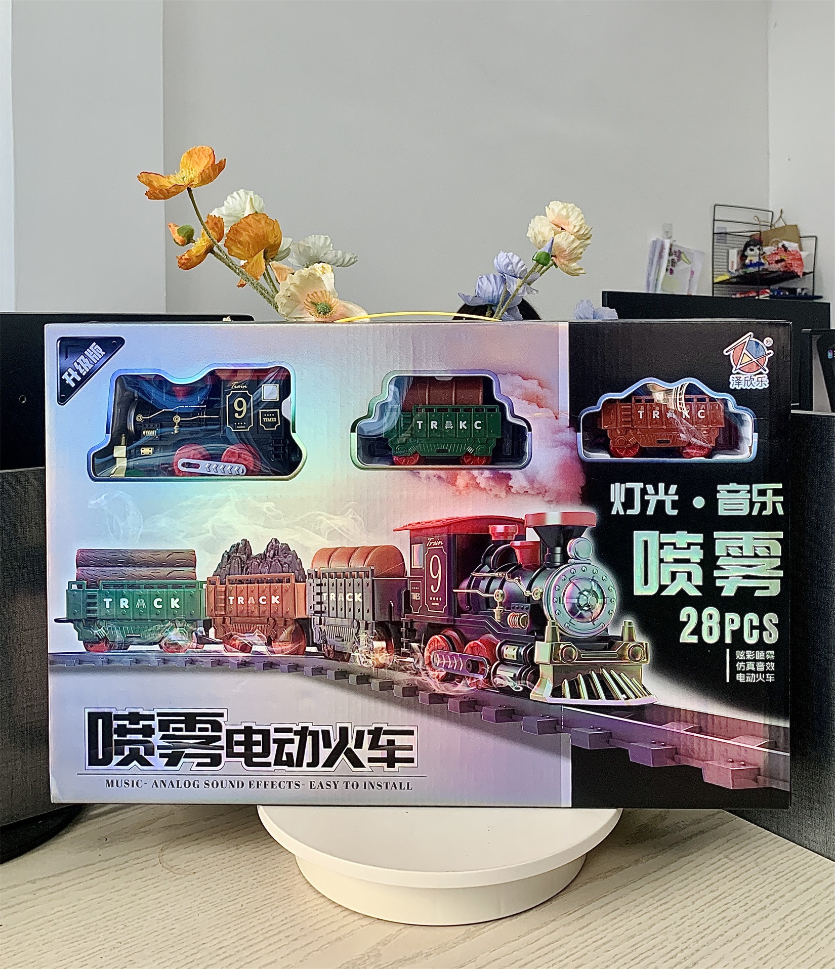 퍼즐 조립 트랙 전기 자동차 음악 스프레이 전기 기차 부모-어린이 대화 형 게임 소년 장난감스토어 가기