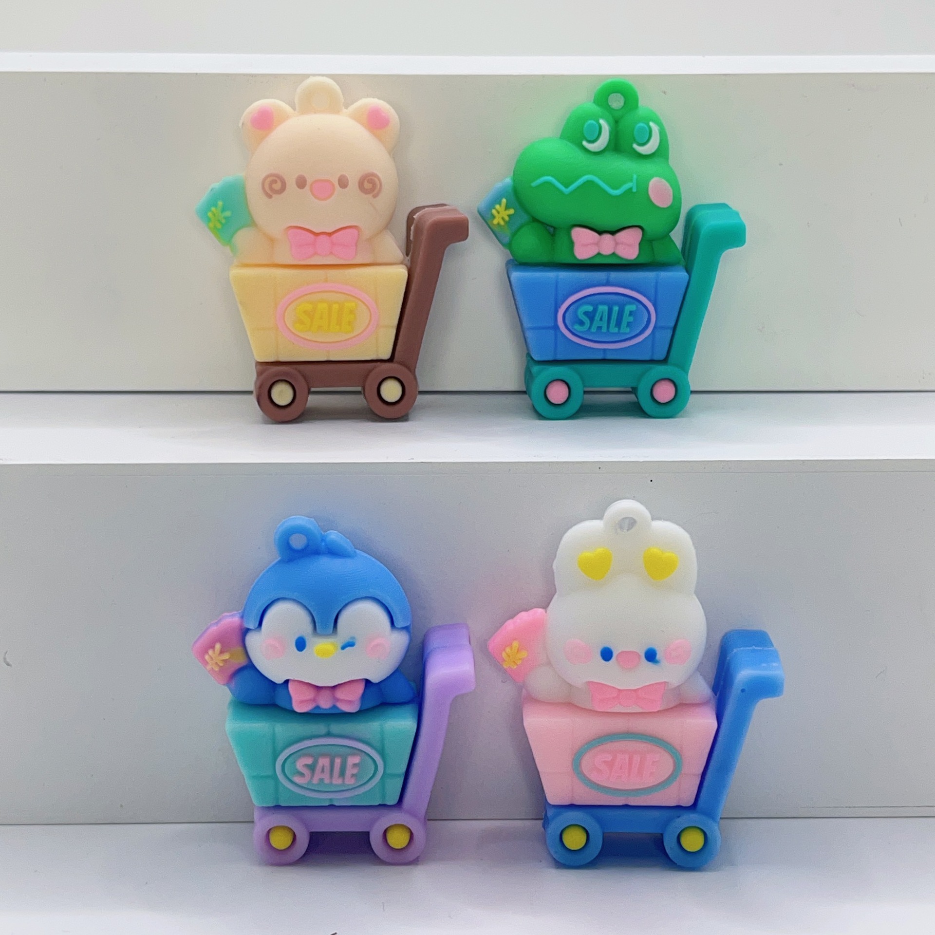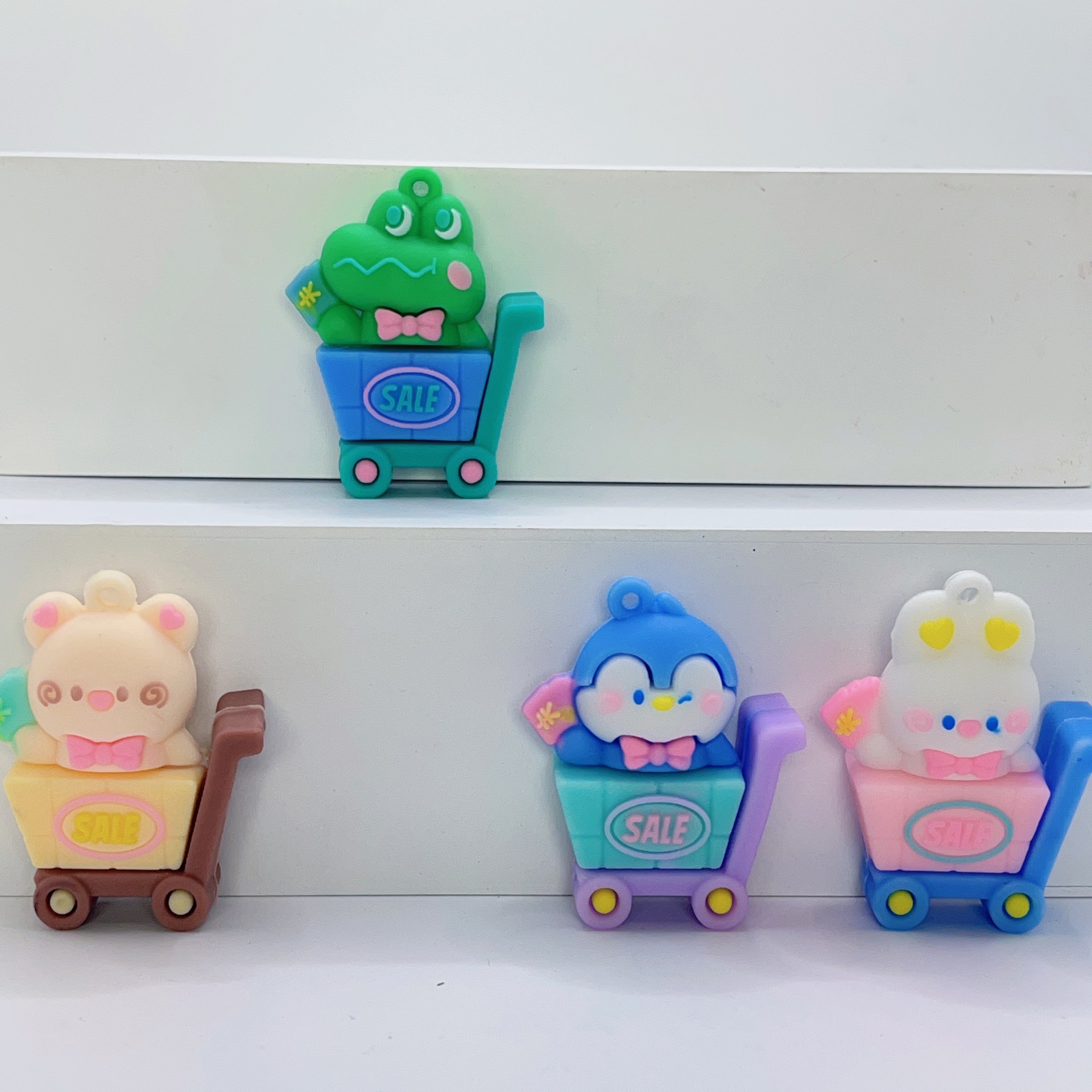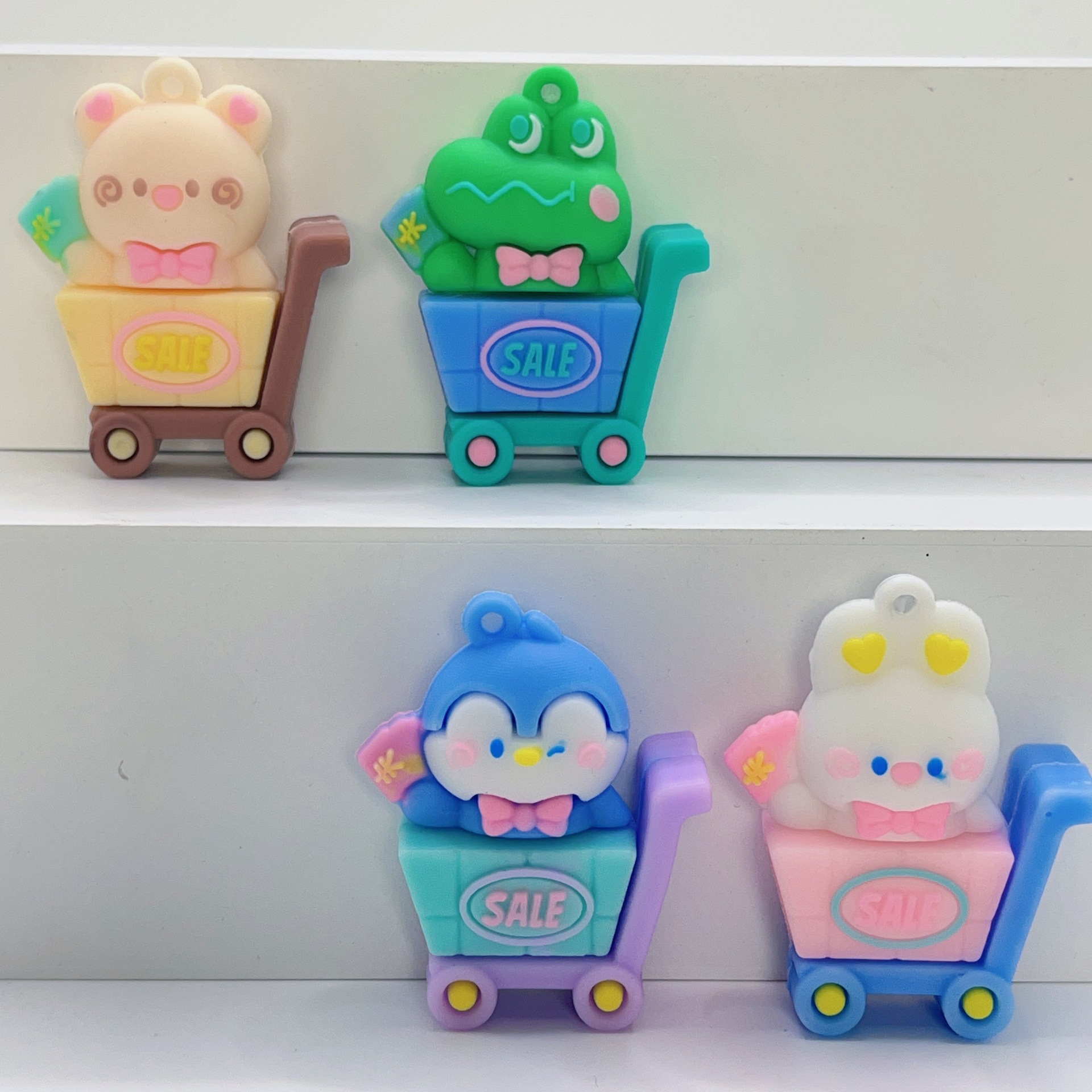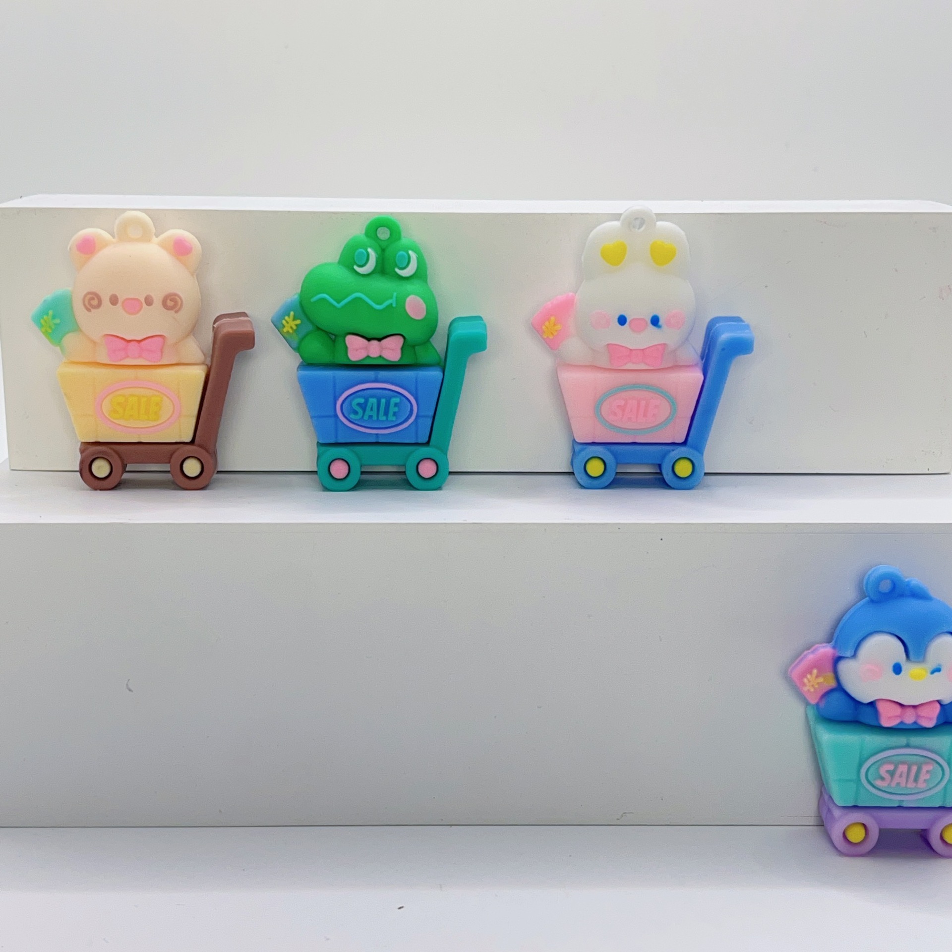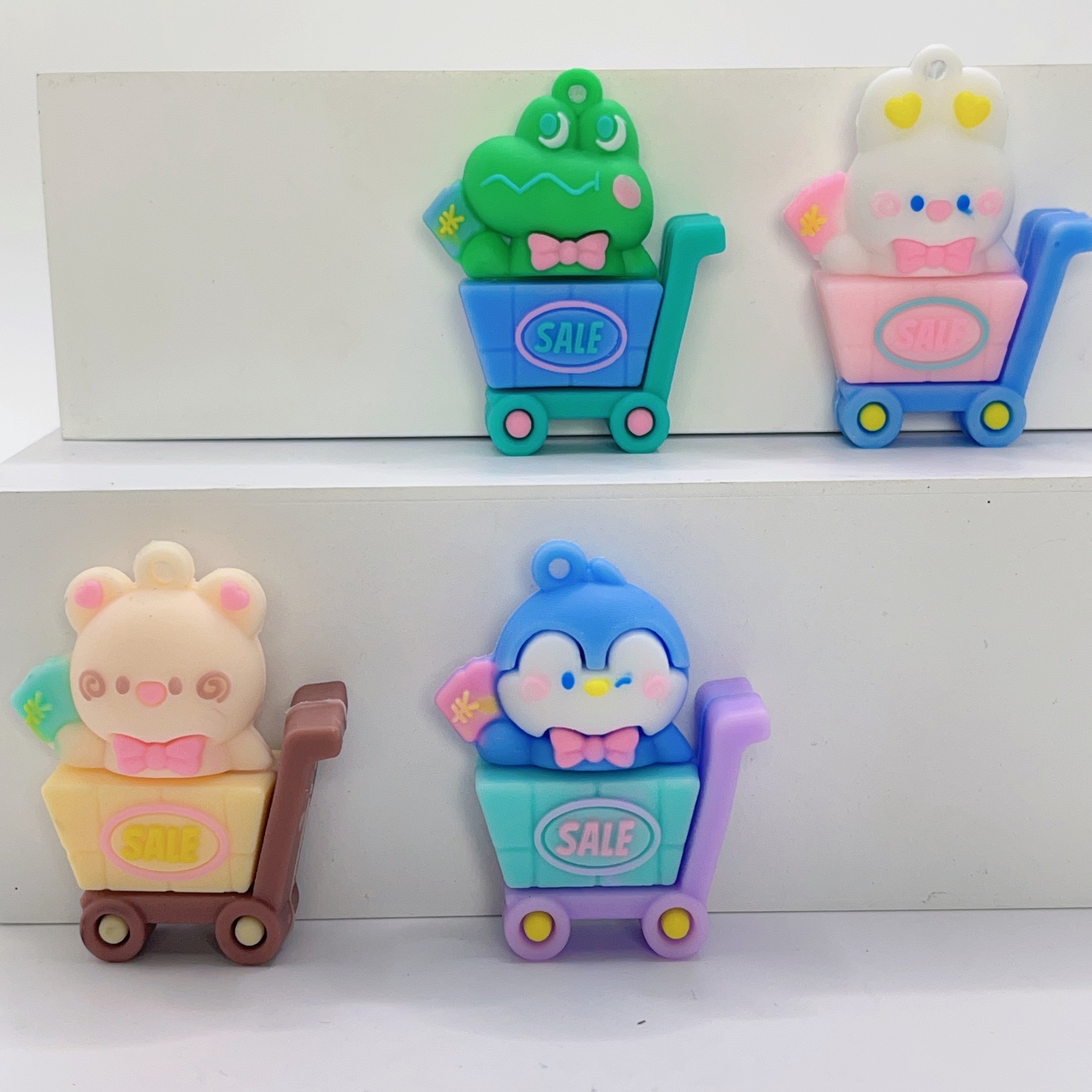 귀여운 작은 동물 쇼핑 카트 자동차 키 체인 펜던트 만화 인형 커플 장식품 절묘한 키 체인 도매