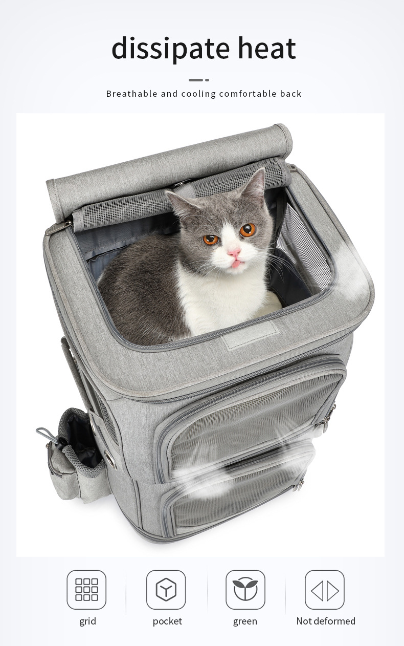 고양이 애완 동물 밖으로 대용량 휴대용 고양이 가방 통기성 도매 두 고양이 여행 배낭 통기성 트롤리 가방스토어 가기