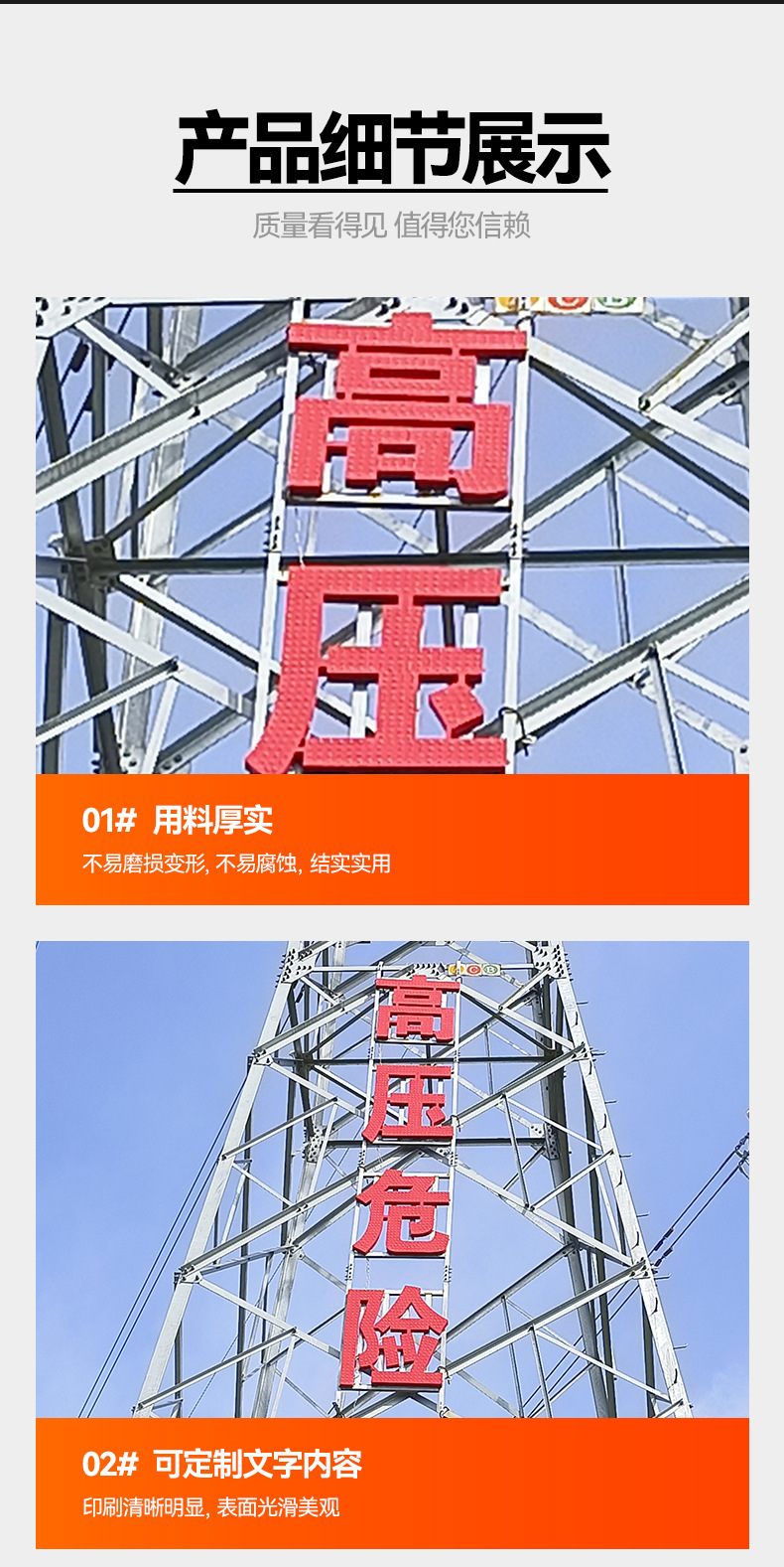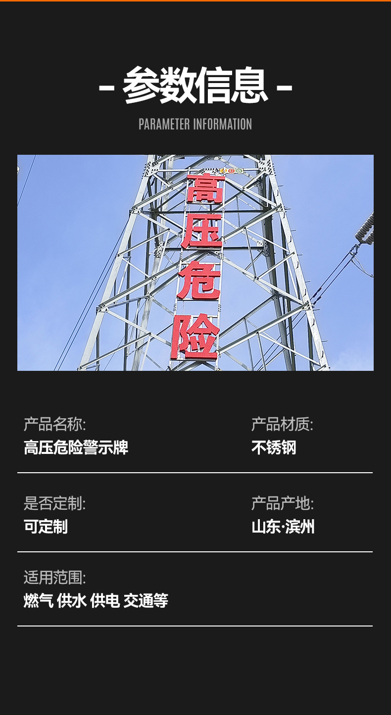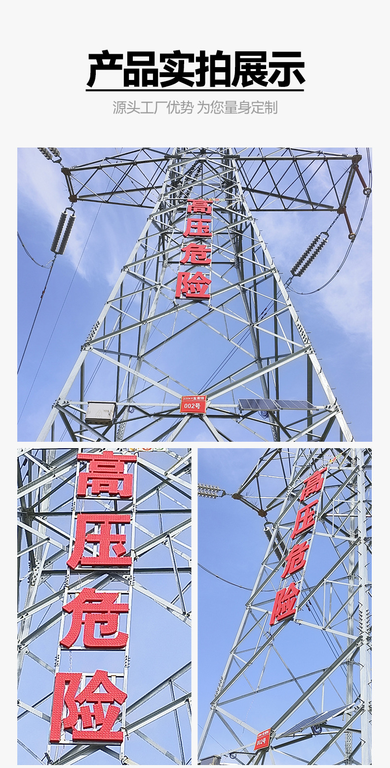 파워 타워 경고 표시 타워 반사 경고 표시 스테인레스 스틸 고전압 철 위험 표시