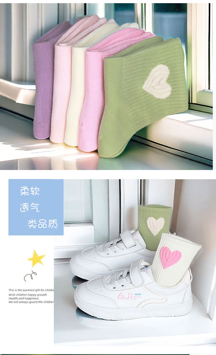 사랑 진드기 어린이 양말 제조 업체 도매 재고 가을 귀여운 복숭아 심장 여성 보물 학생 높은 양말 한국어 버전스토어 가기
