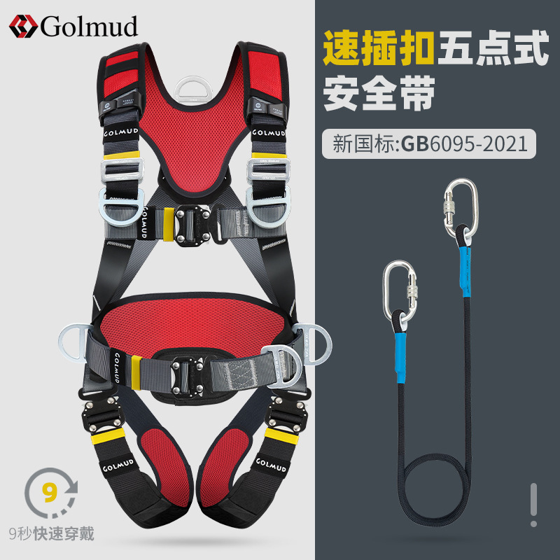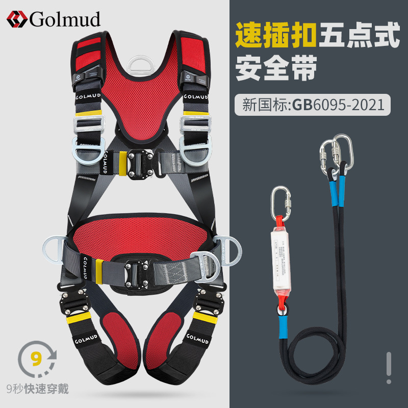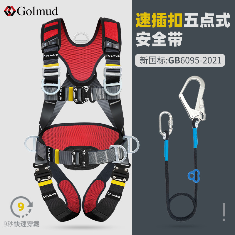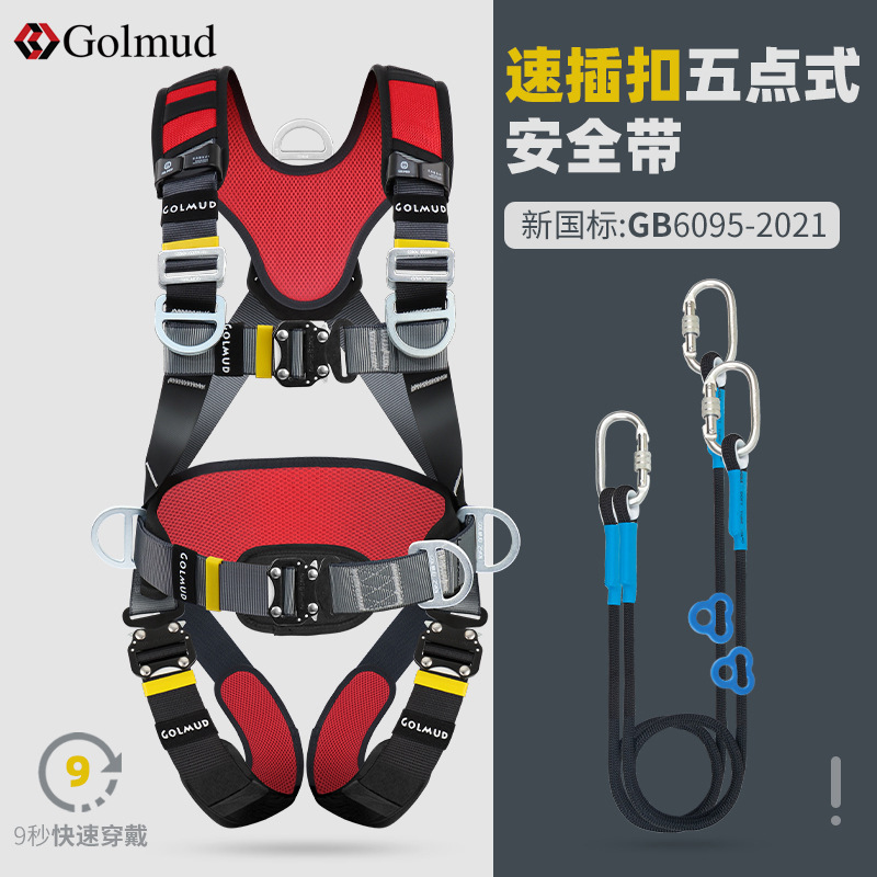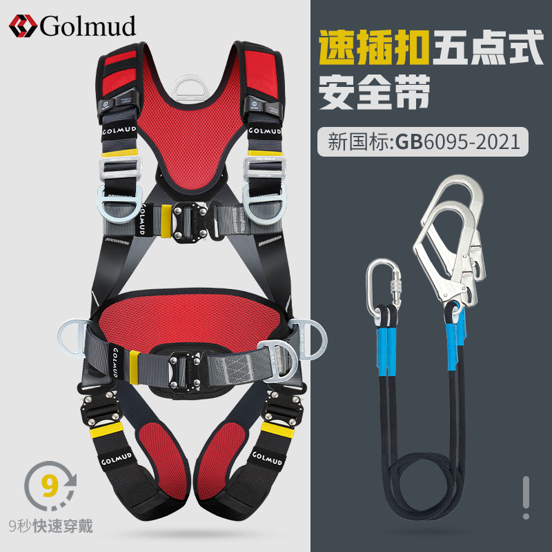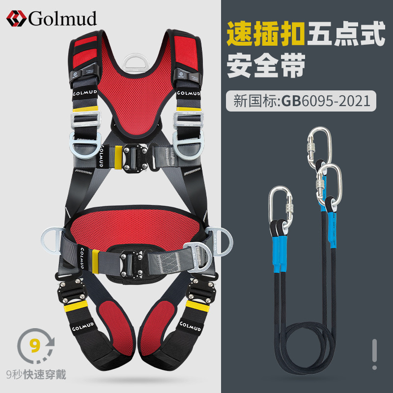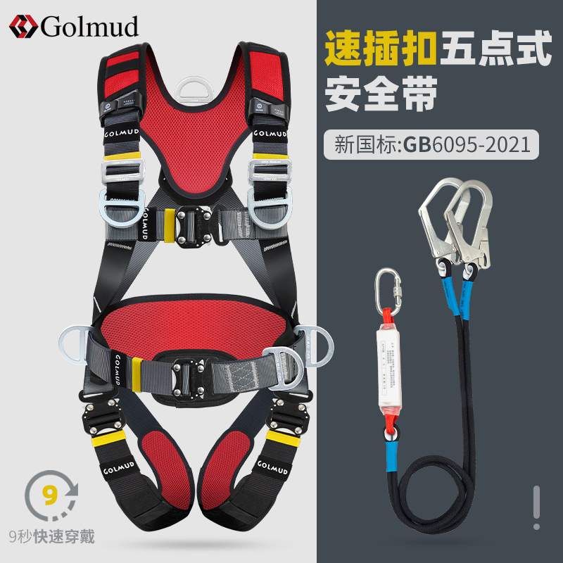 그람 빠른 삽입 5 점 안전 벨트 GD3698 공중 작업 전신 이중 후크 안전 로프 세트 국가 표준스토어 가기