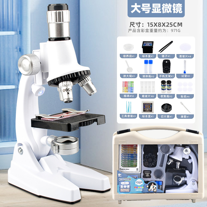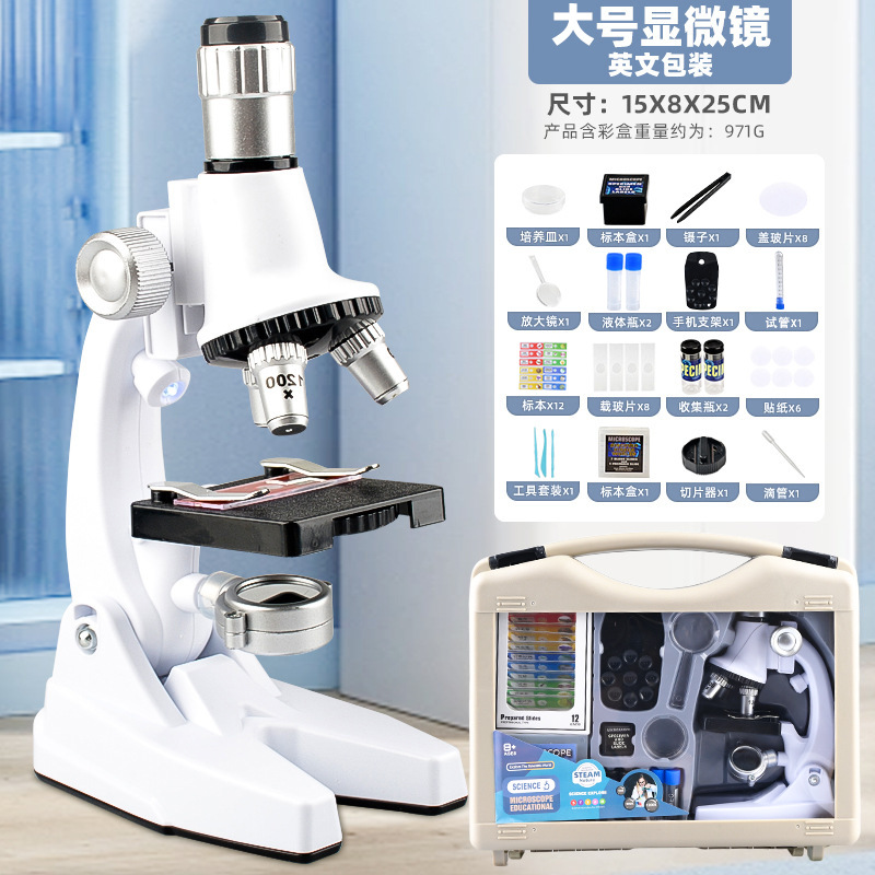 칭바오 어린이 1200 배 대형 현미경 휴대용 초등학교 학생 과학 실험 세트 교육 장난감 선물