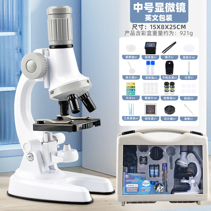 칭바오 어린이 1200 배 대형 현미경 휴대용 초등학교 학생 과학 실험 세트 교육 장난감 선물스토어 가기