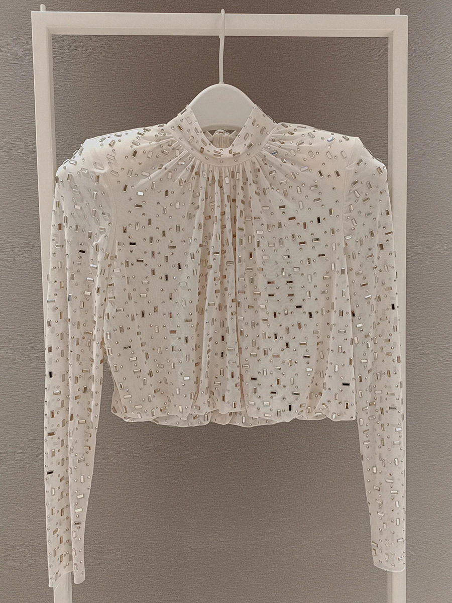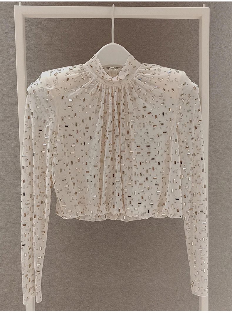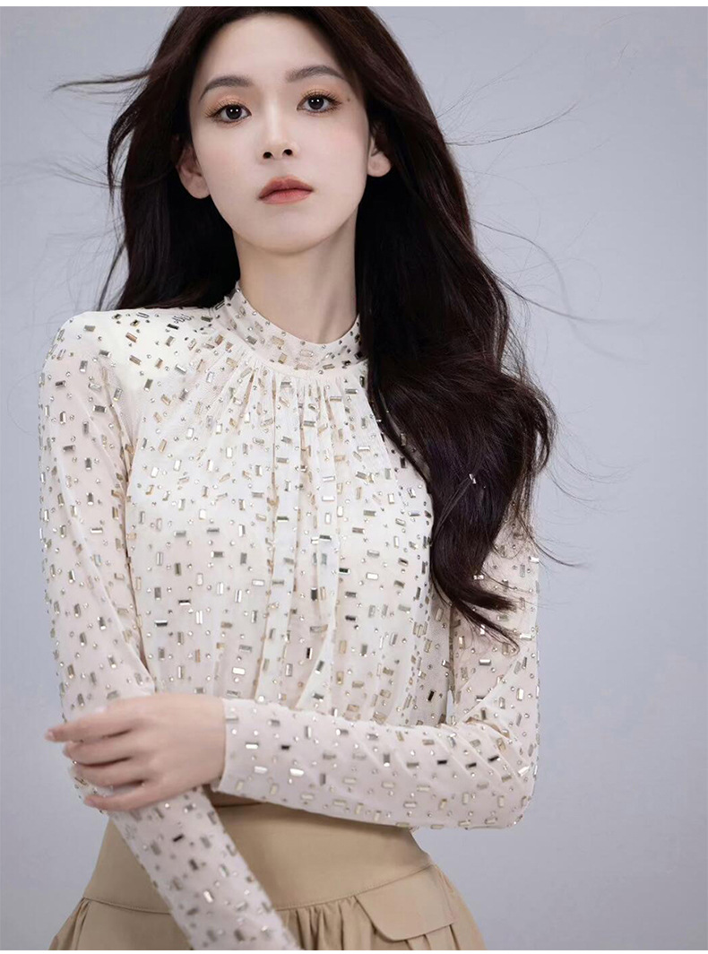 유명 인사 천 골드 중공업 핫 드릴링 풀오버 선스크린 셔츠 얇은 긴 소매 쉬폰 탑 여성 독특한 세련된 여름 셔츠스토어 가기