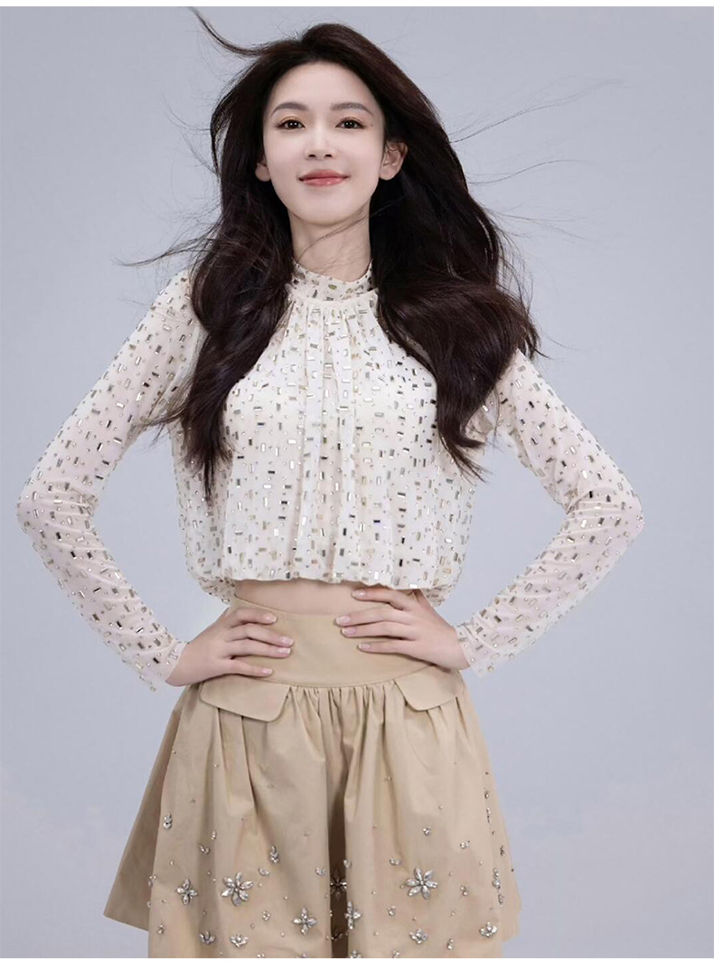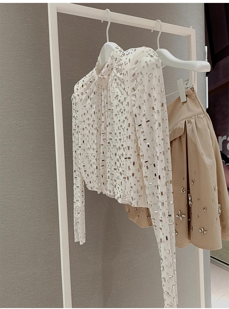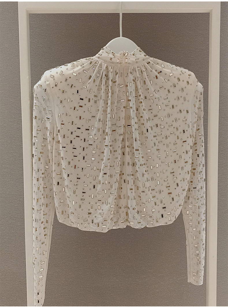 유명 인사 천 골드 중공업 핫 드릴링 풀오버 선스크린 셔츠 얇은 긴 소매 쉬폰 탑 여성 독특한 세련된 여름 셔츠