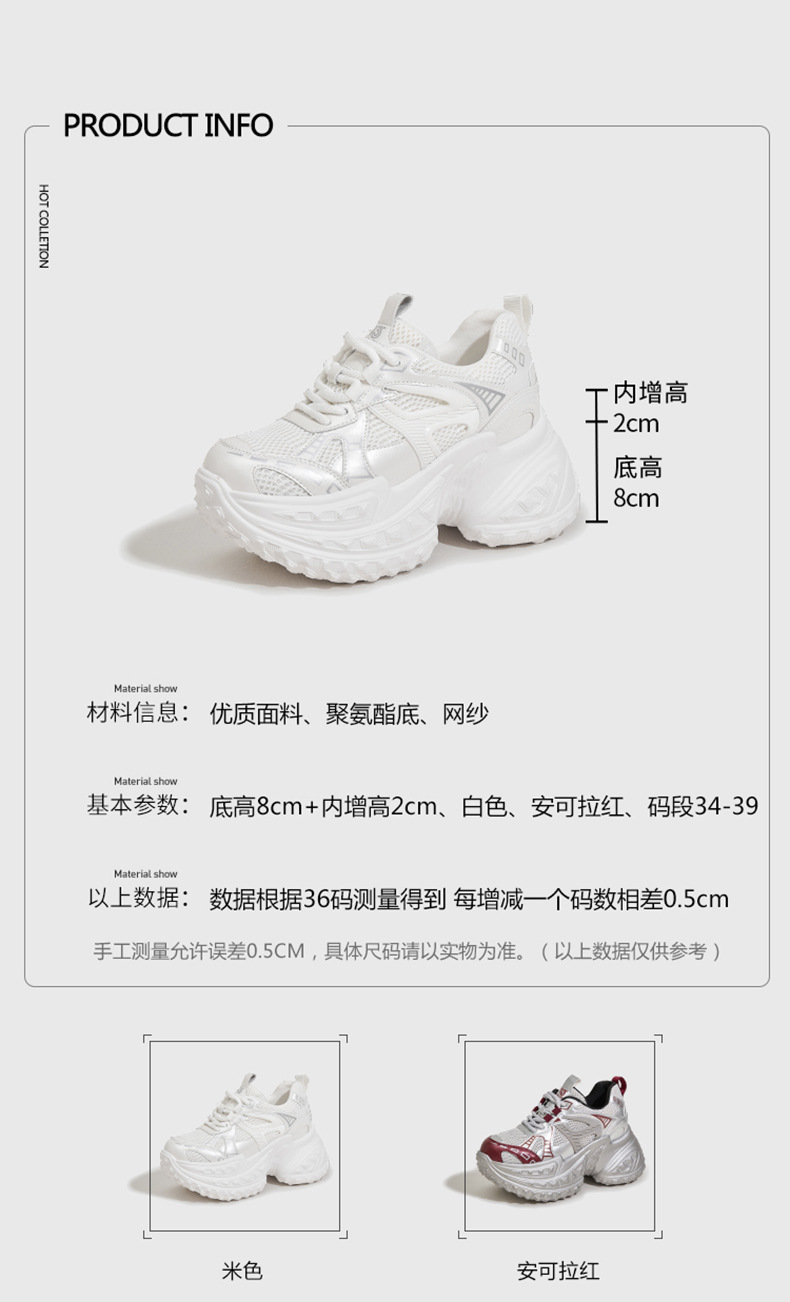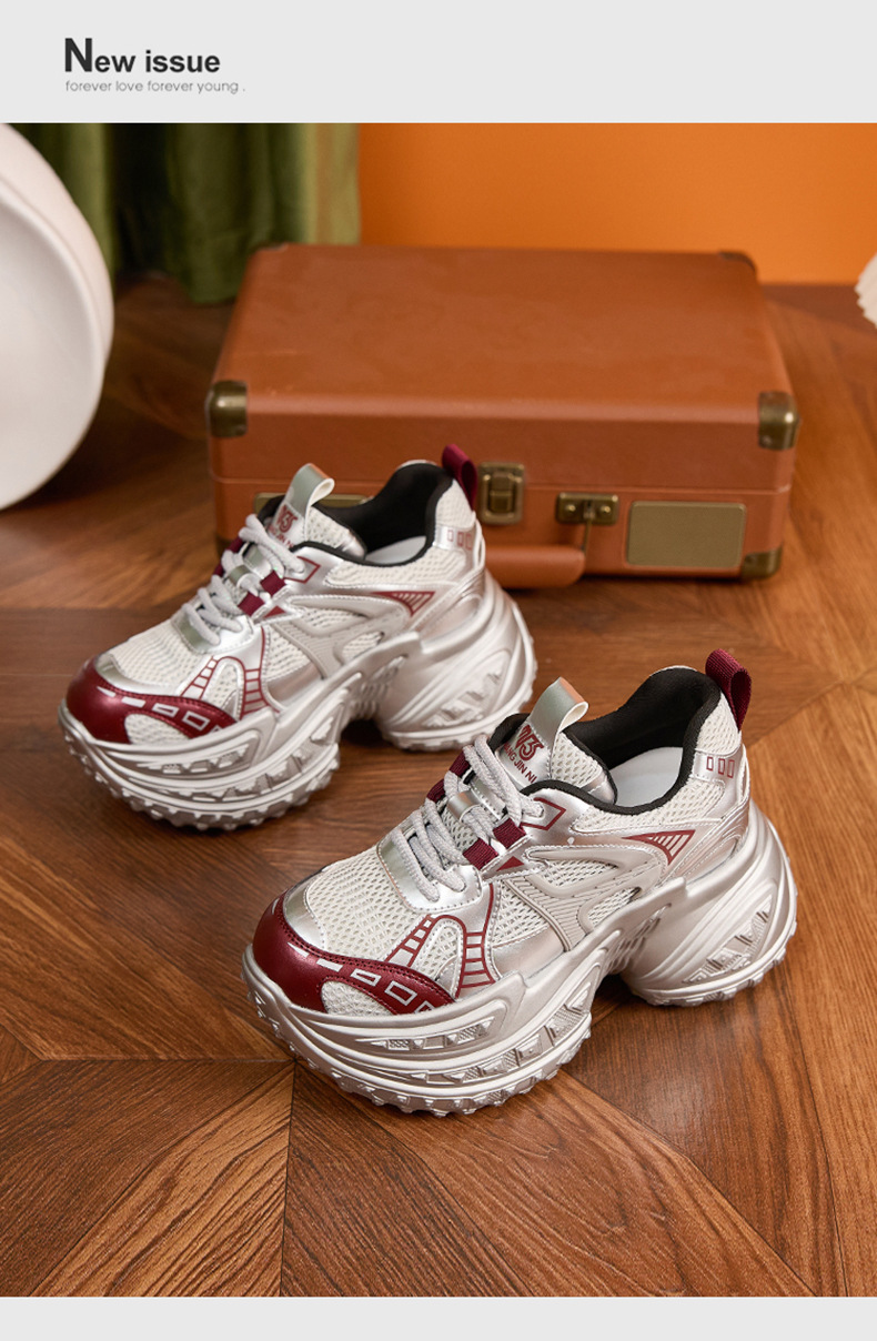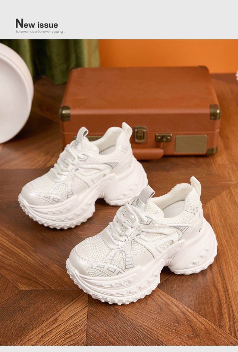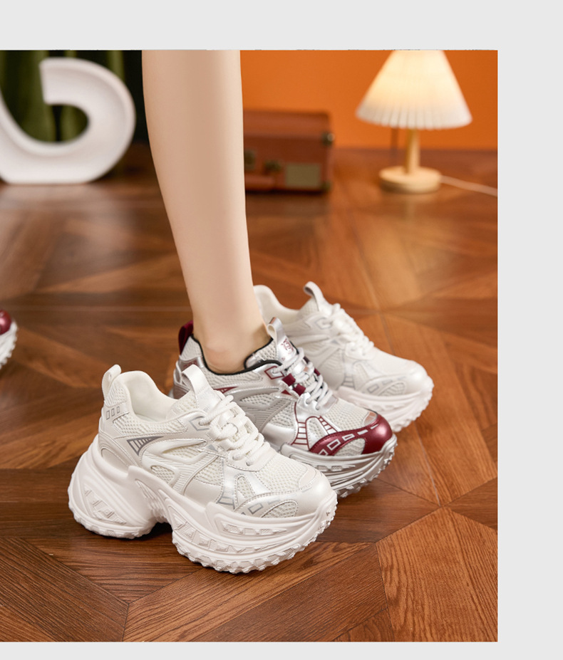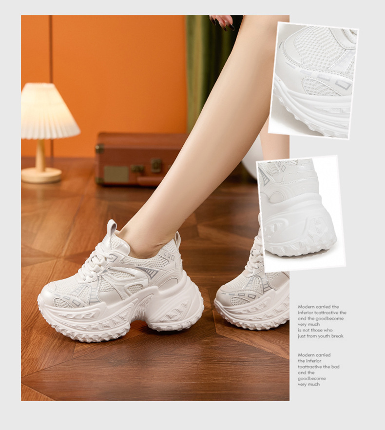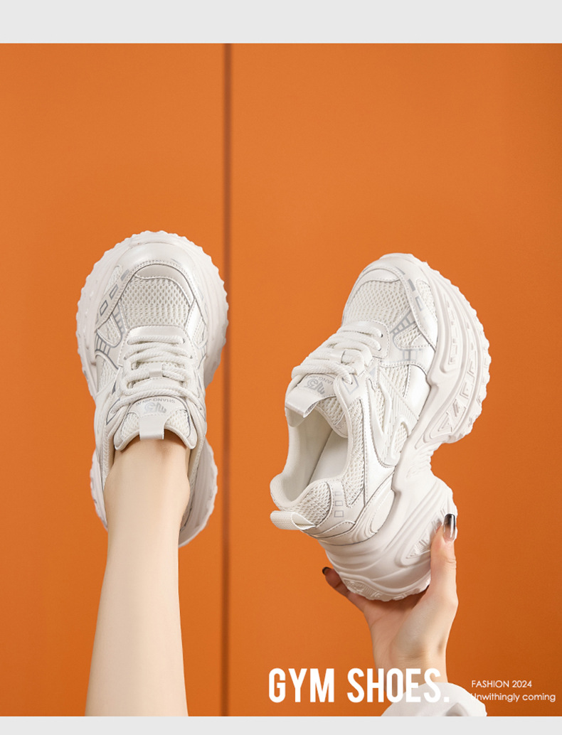 토레 신발 여성의 가을 2024 새로운 올 매치 통기성 메쉬 캐주얼 스포츠 신발 두꺼운 단독 높이 증가 여성 신발스토어 가기