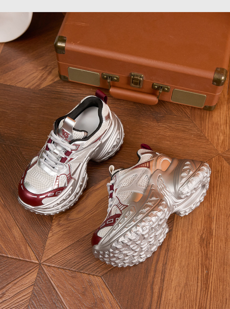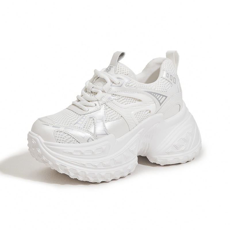 토레 신발 여성의 가을 2024 새로운 올 매치 통기성 메쉬 캐주얼 스포츠 신발 두꺼운 단독 높이 증가 여성 신발