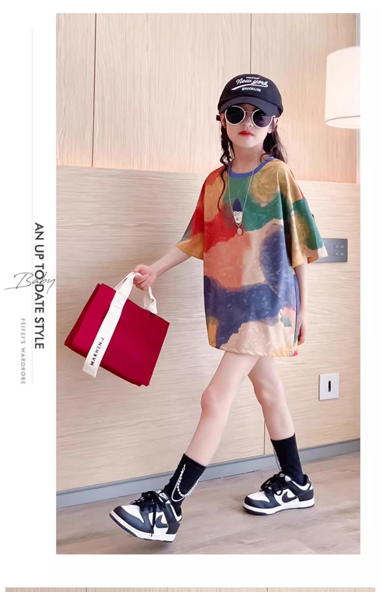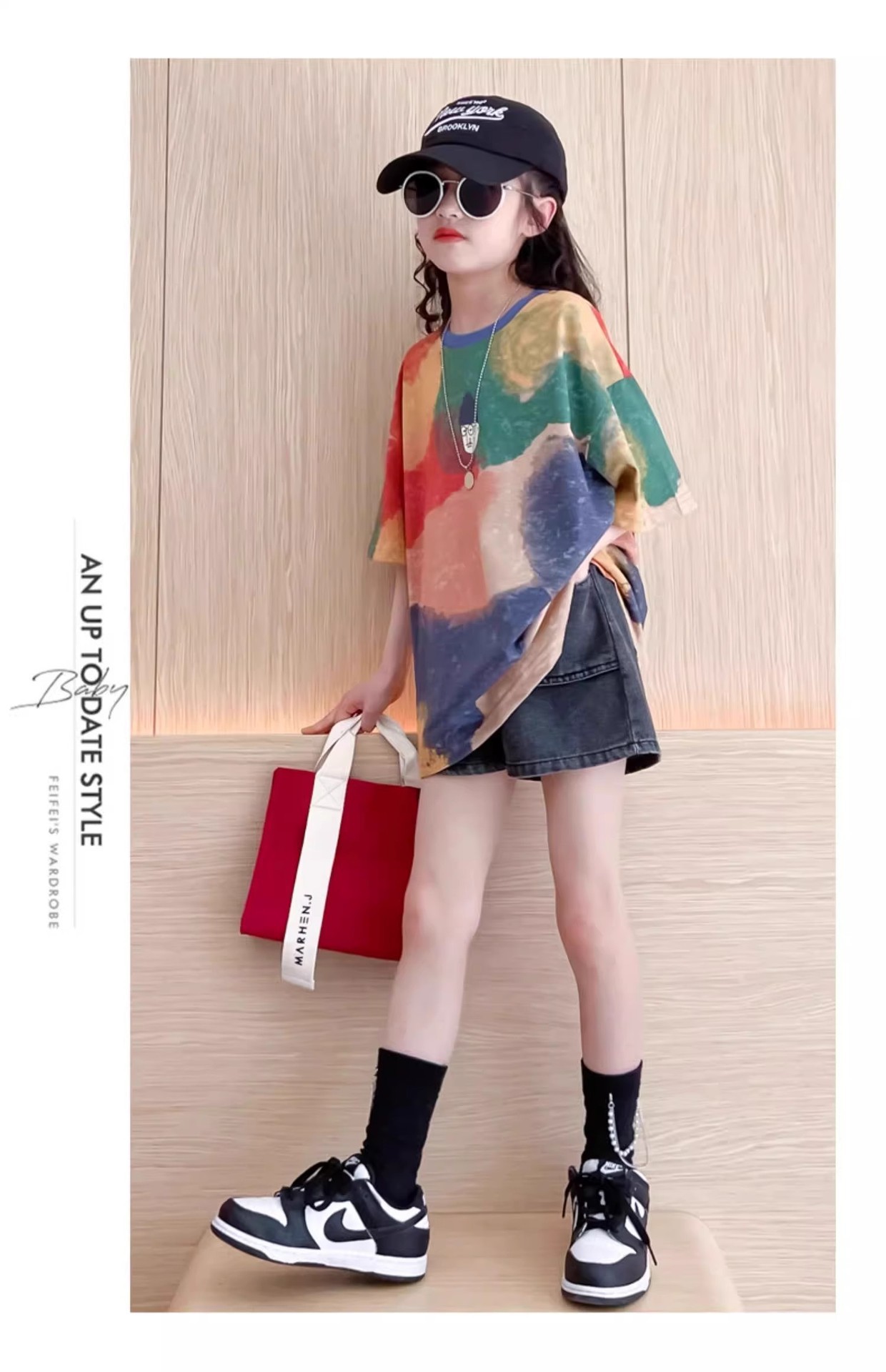 소녀 반팔 티셔츠 2024 새 아동복 큰 어린이 느슨한 반소매 여름 여학생 여름 서양식 아동복 6스토어 가기
