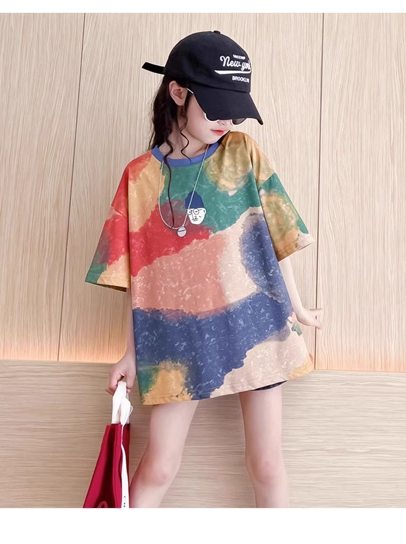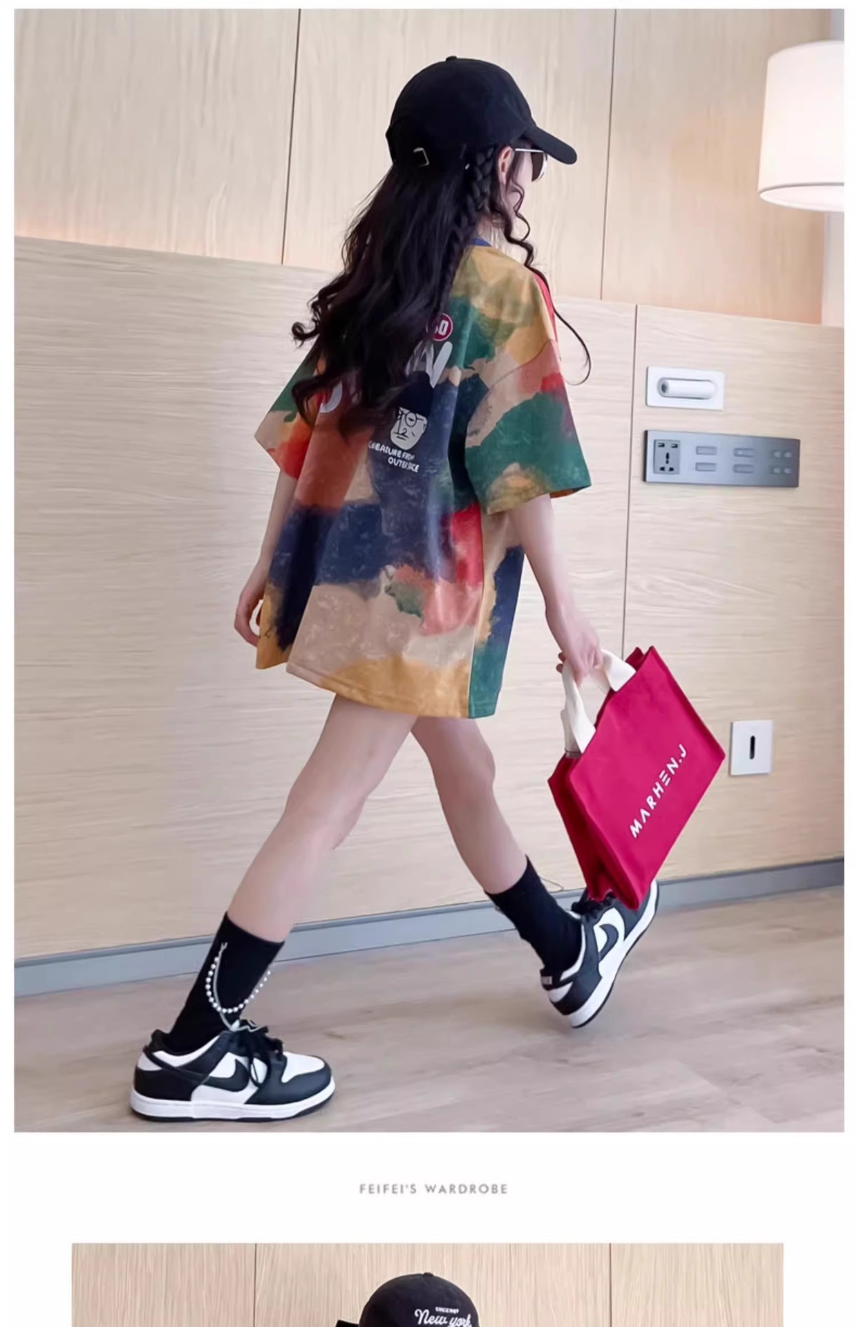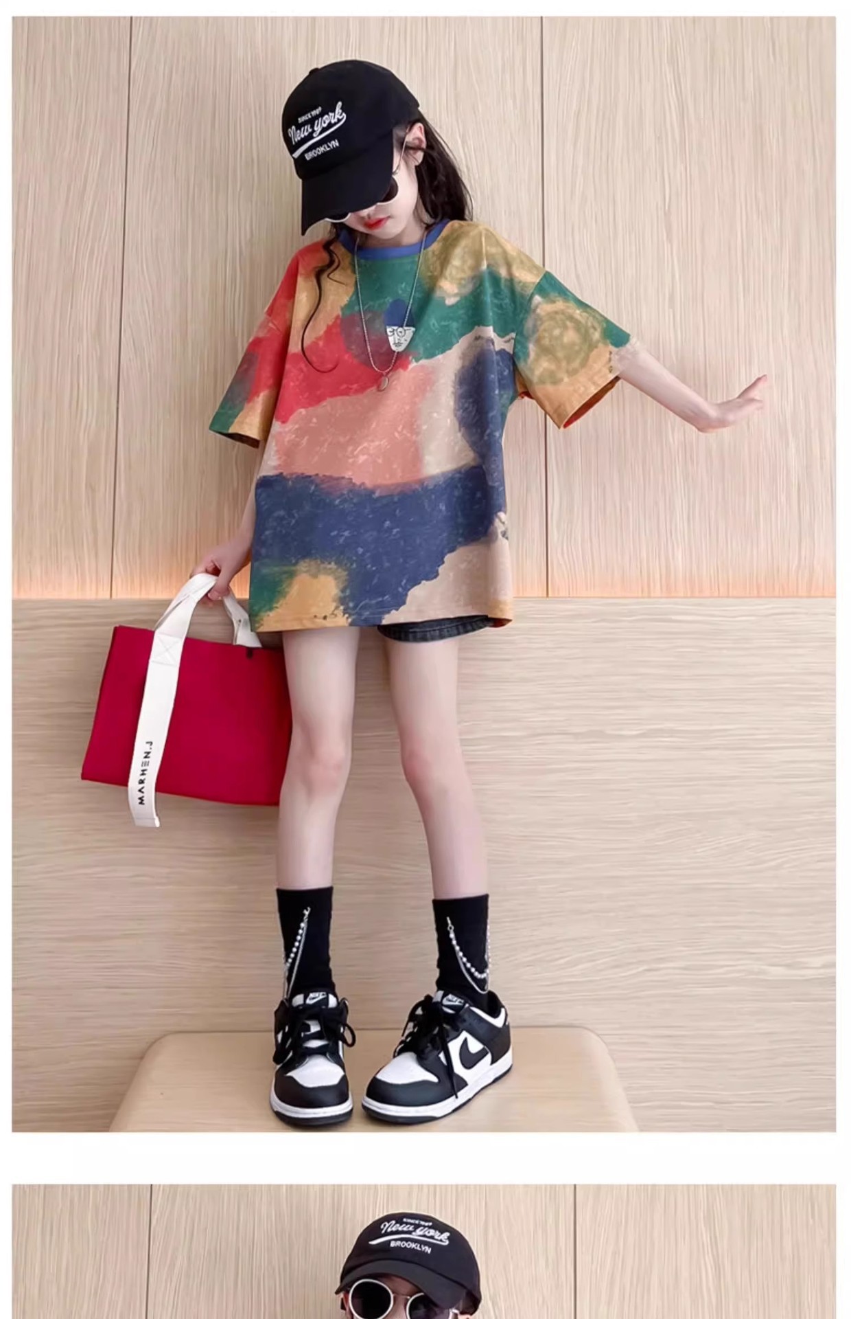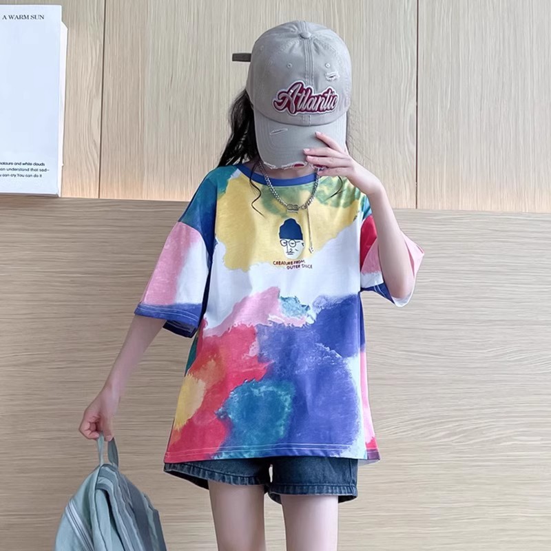 소녀 반팔 티셔츠 2024 새 아동복 큰 어린이 느슨한 반소매 여름 여학생 여름 서양식 아동복 6