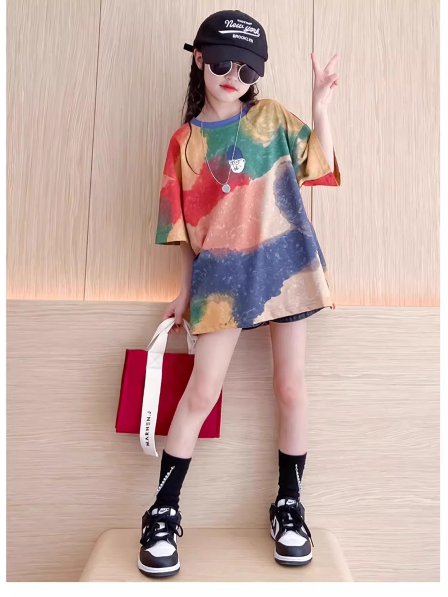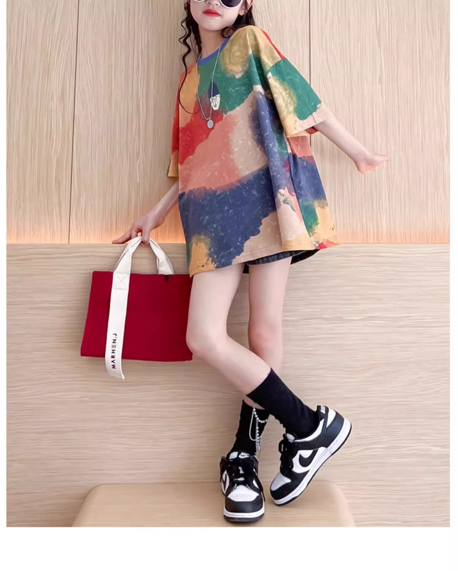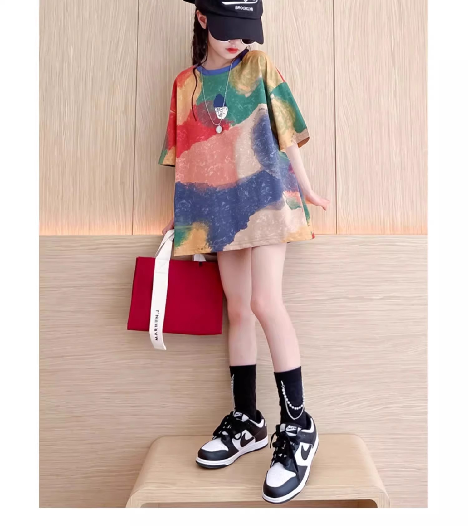 소녀 반팔 티셔츠 2024 새 아동복 큰 어린이 느슨한 반소매 여름 여학생 여름 서양식 아동복 6