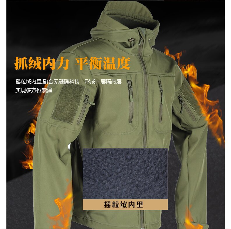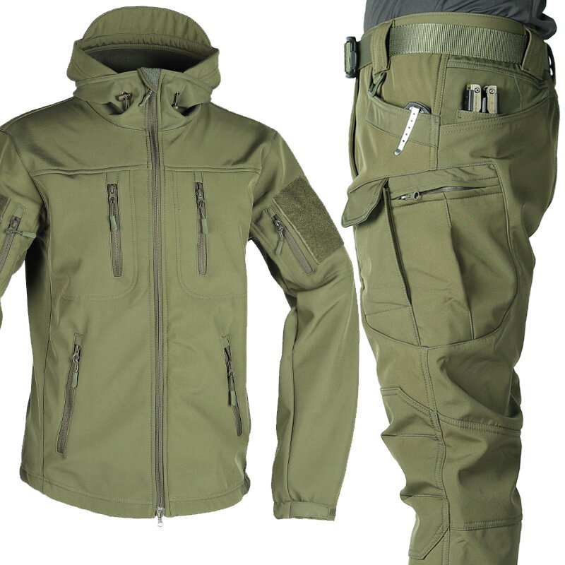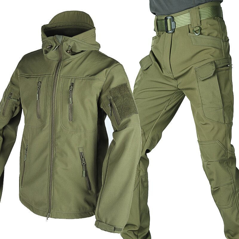 국경 간 소프트 쉘 재킷 세트 남성 야외 기모 따뜻한 재킷 방수 내마모성 등산 세트 훈련 유니폼