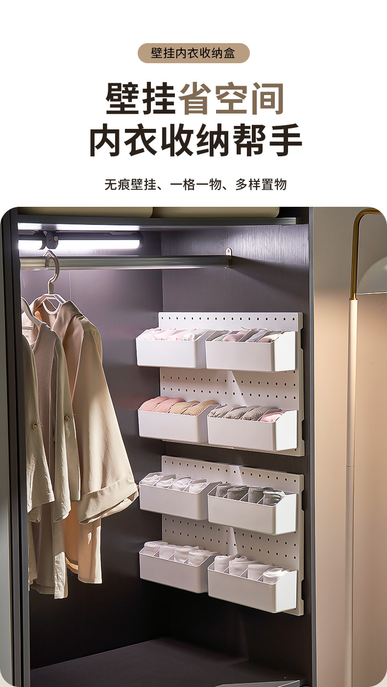 벽에 걸려있는 속옷 양말 저장 유물 구멍 보드 비 천공 흰색 조합 벽 장식 파티션 저장 상자스토어 가기