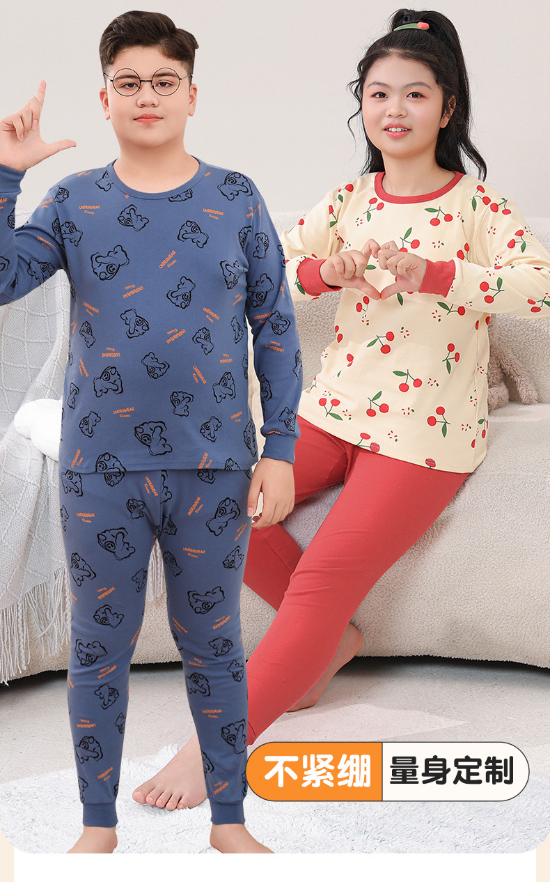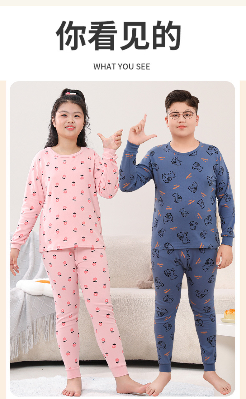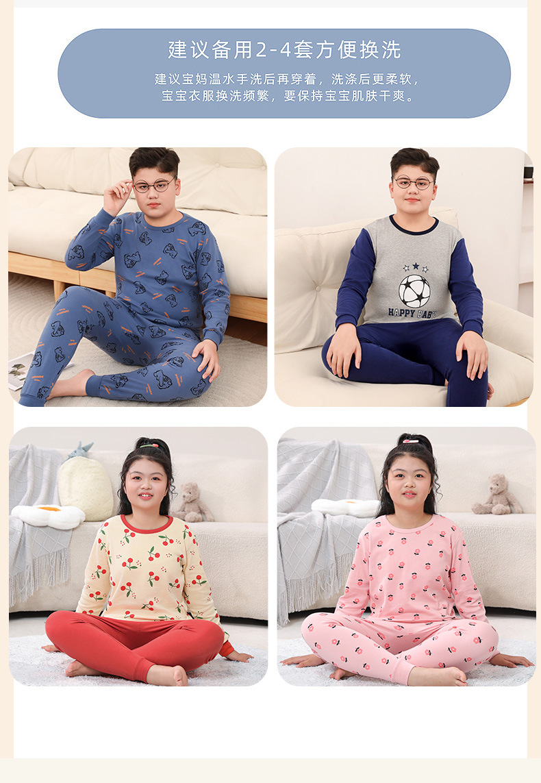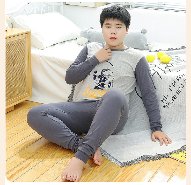 뚱뚱한 아이들의 10 대 속옷 남학생과 여학생 잠옷 봄과 가을 더하기 따뜻한 중학교 및 고등학생의 집에서 긴 소매 세트 착용스토어 가기