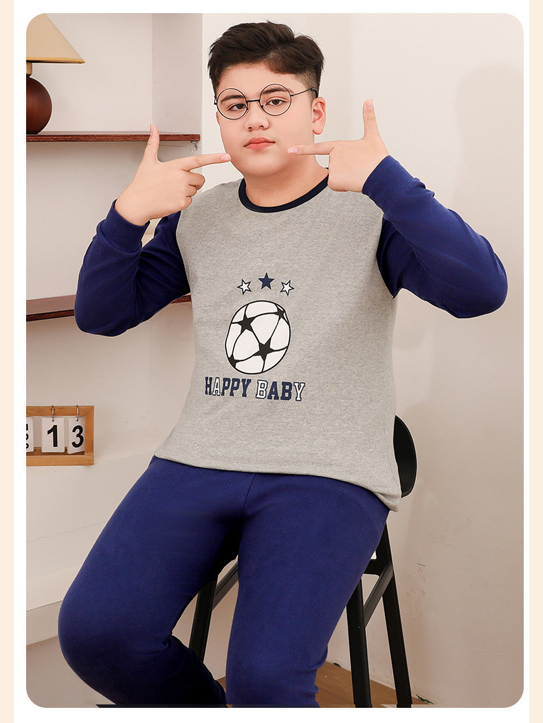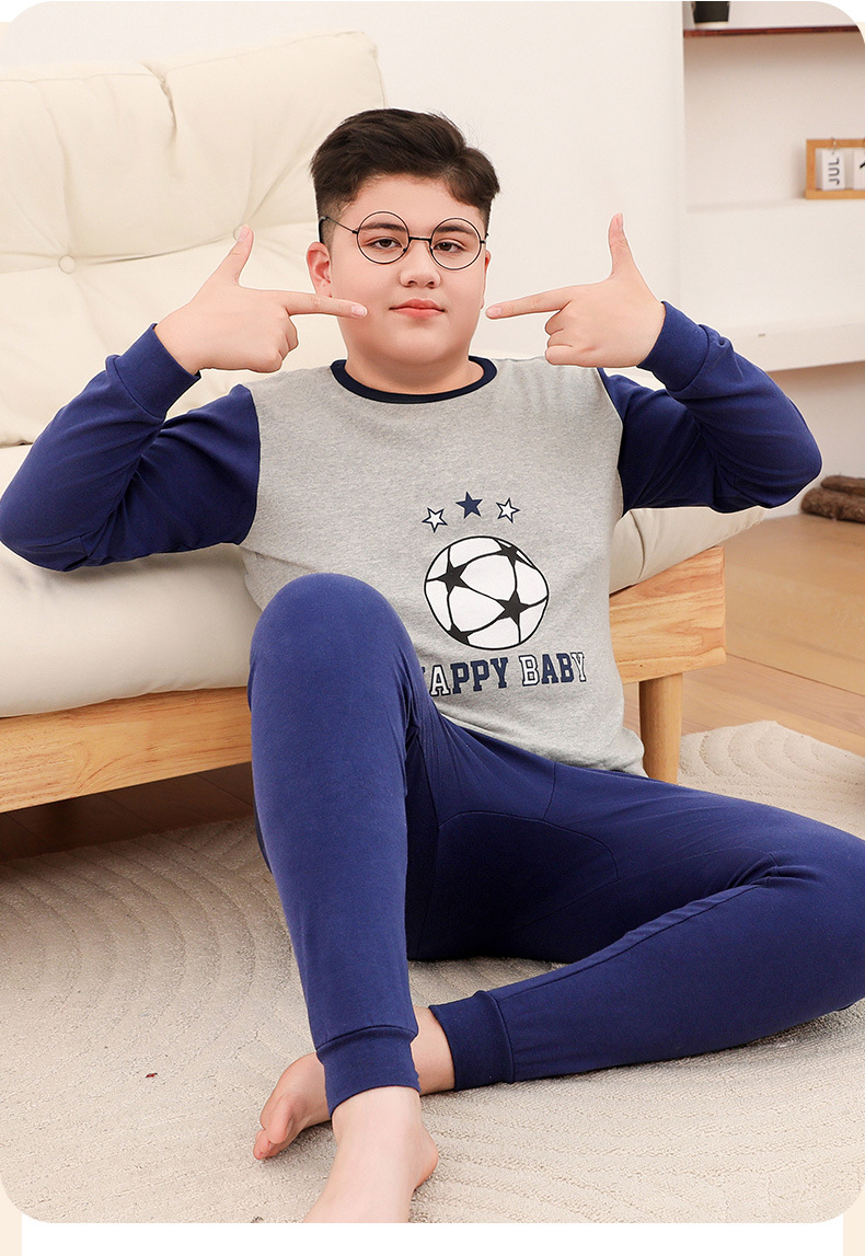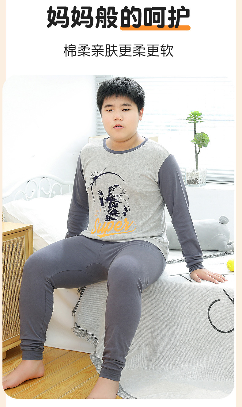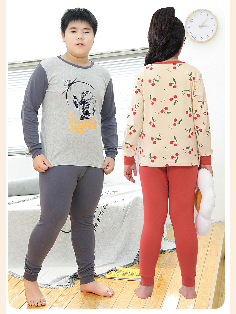 뚱뚱한 아이들의 10 대 속옷 남학생과 여학생 잠옷 봄과 가을 더하기 따뜻한 중학교 및 고등학생의 집에서 긴 소매 세트 착용