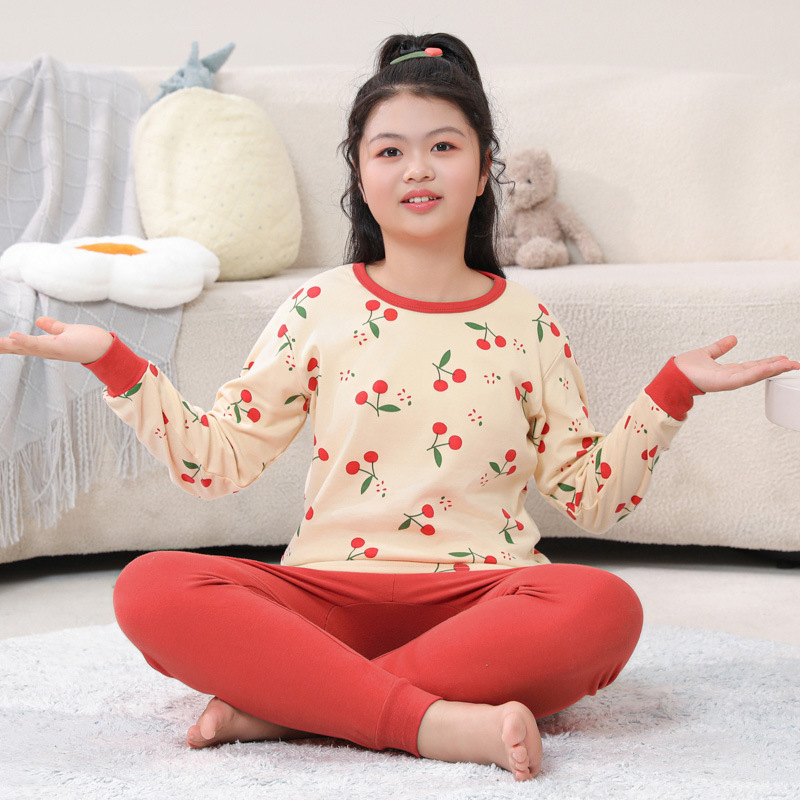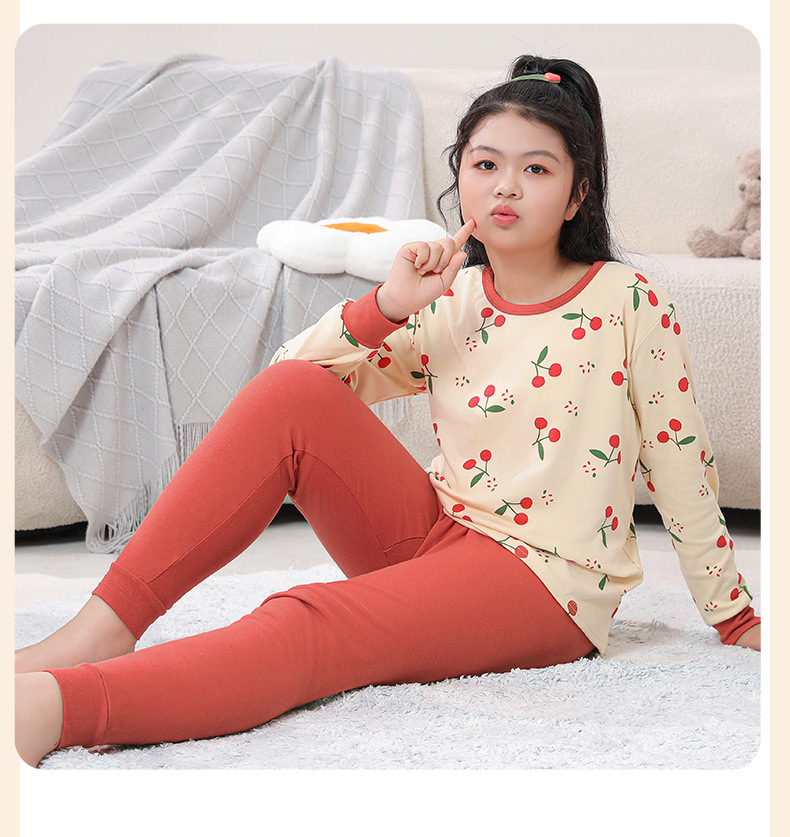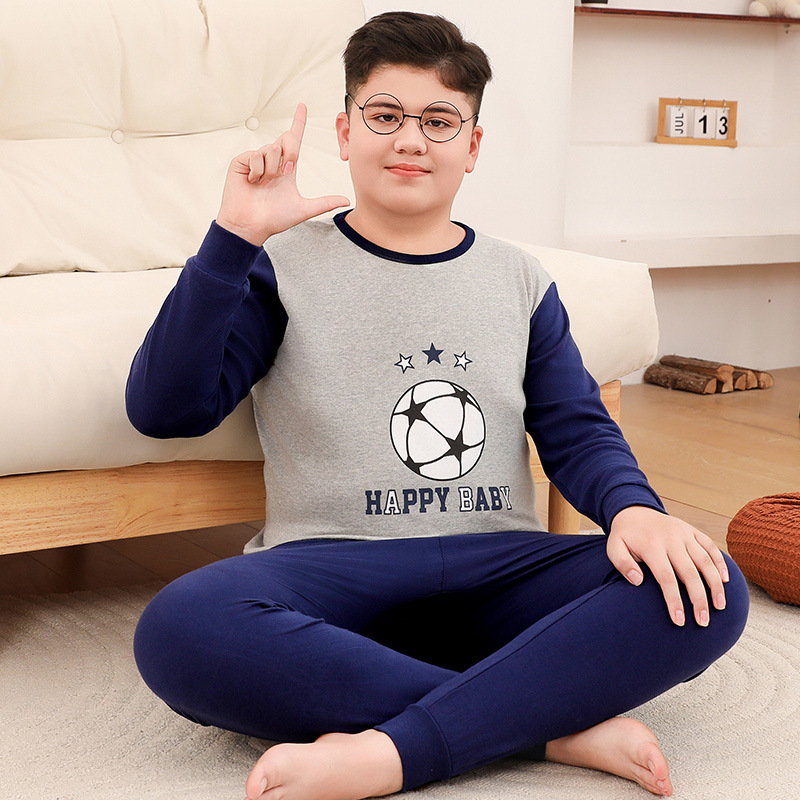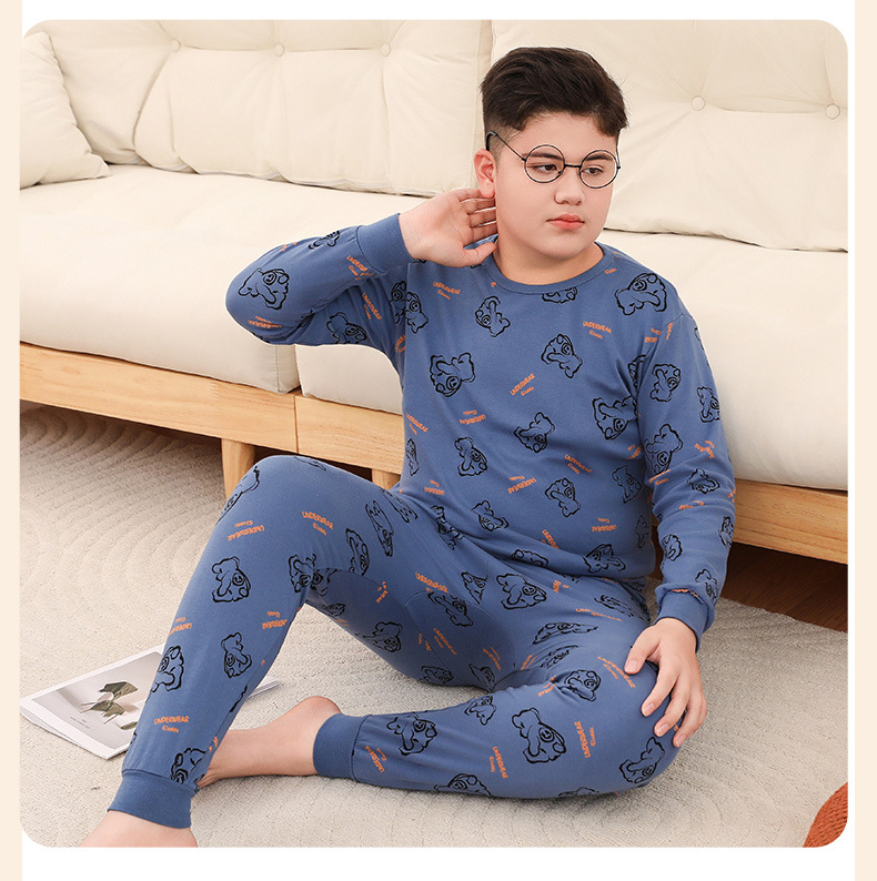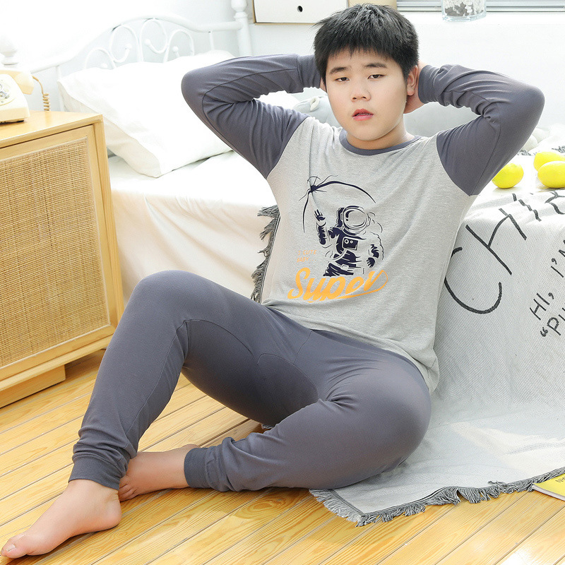 뚱뚱한 아이들의 10 대 속옷 남학생과 여학생 잠옷 봄과 가을 더하기 따뜻한 중학교 및 고등학생의 집에서 긴 소매 세트 착용