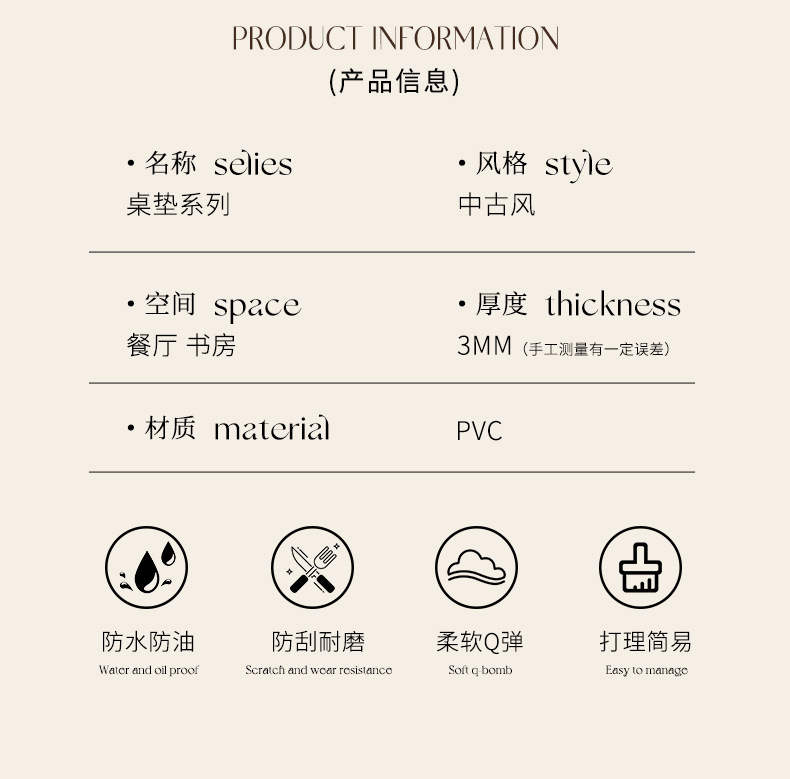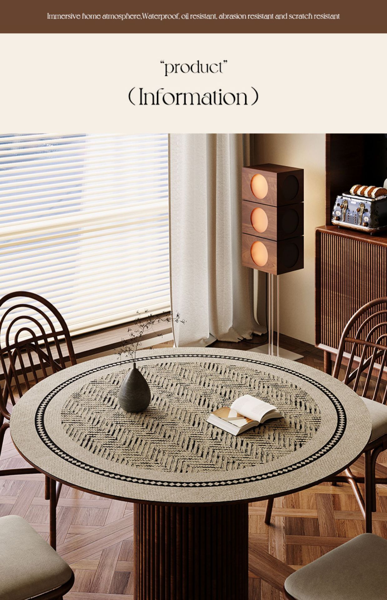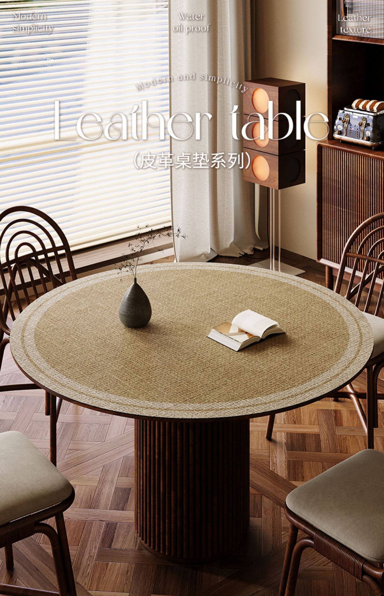 중간 골동품 고급 라운드 테이블 매트 내유성 방수 라운드 커피 테이블 매트 가죽 안티 스케일 테이블 천 더티 저항하는 플레이스스토어 가기