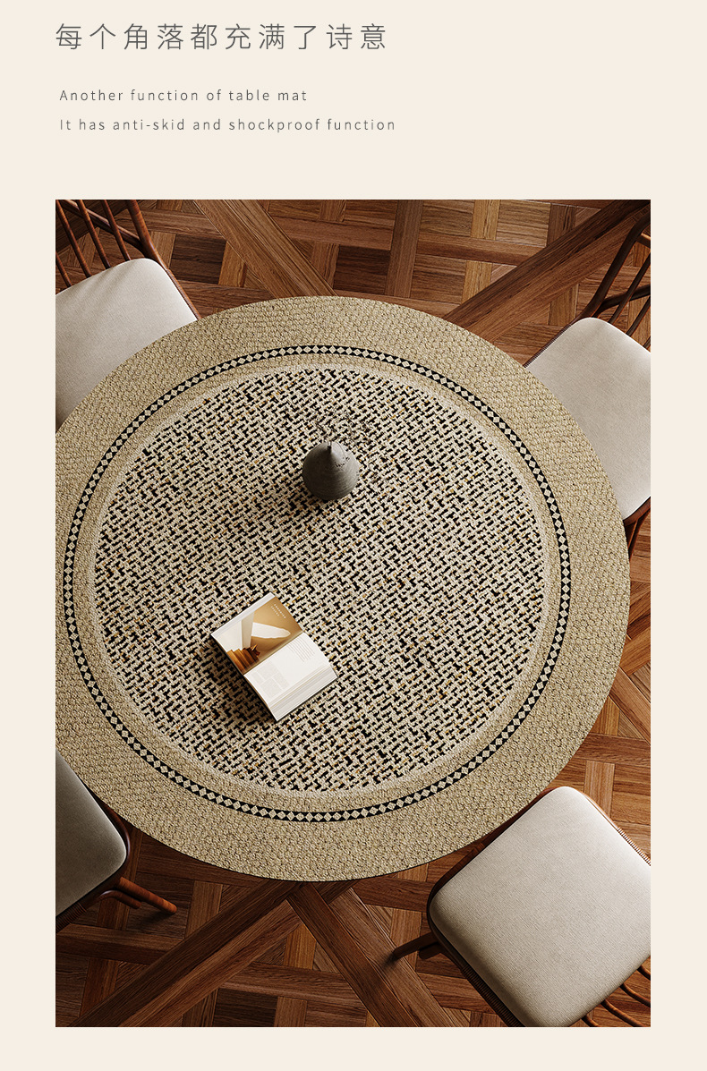 중간 골동품 고급 라운드 테이블 매트 내유성 방수 라운드 커피 테이블 매트 가죽 안티 스케일 테이블 천 더티 저항하는 플레이스