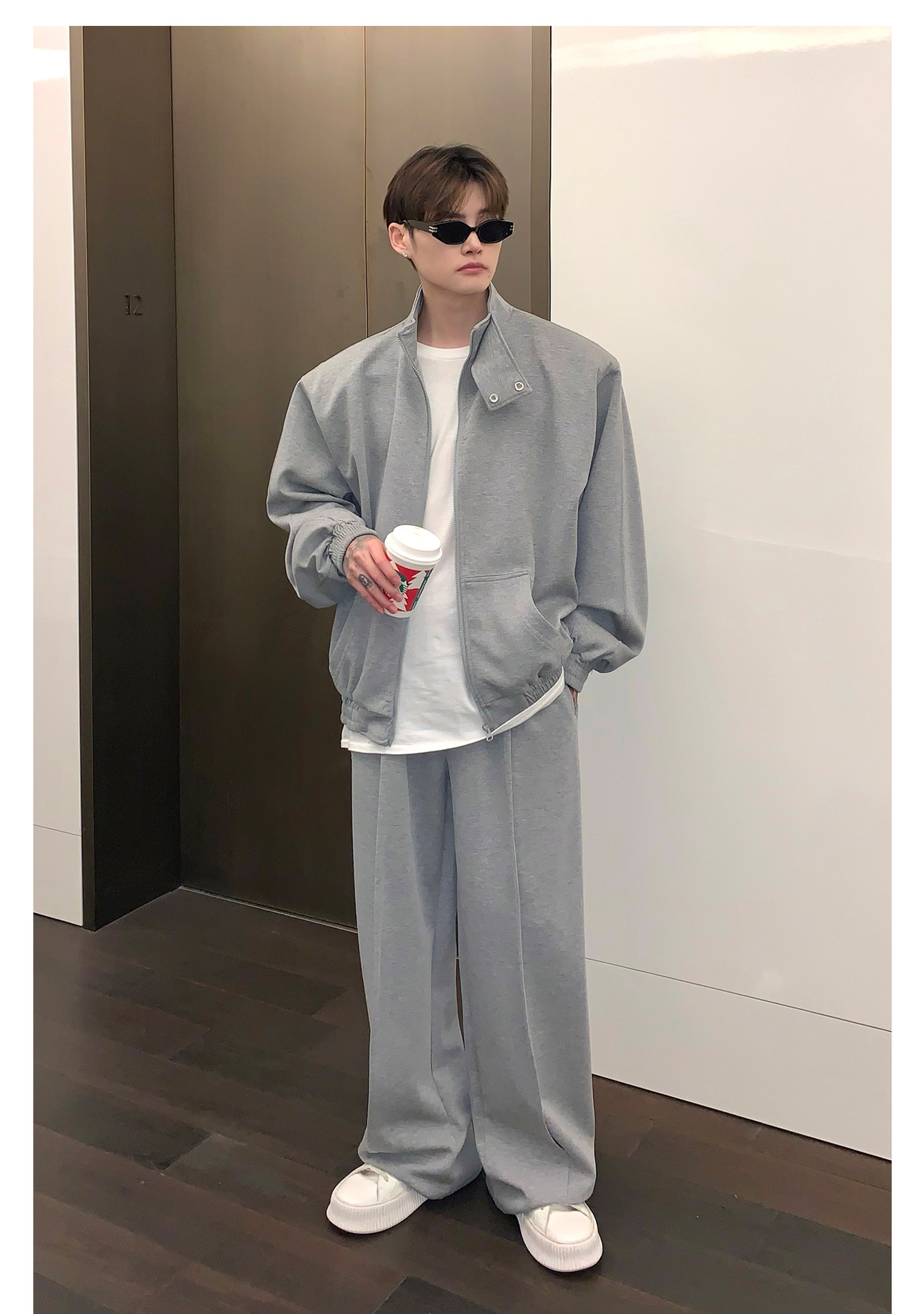 디자인 센스 2024 봄과 가을 새로운 스타일 수직 칼라 카디건 재킷 남자 스포츠 캐주얼 올 매치 세트 느슨한 바지 두 조각