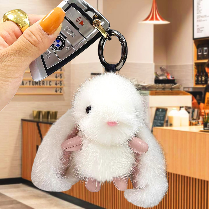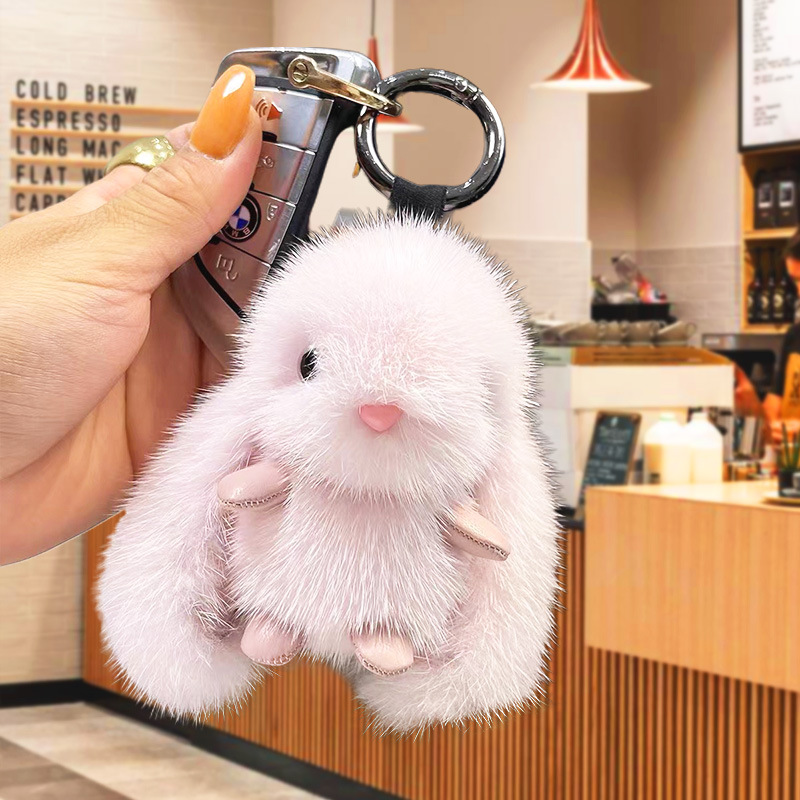도매 봉제 작은 펜던트 밍크 토끼 인형 인형 액세서리 키 체인 인형 키 체인 커플 작은 펜던트스토어 가기