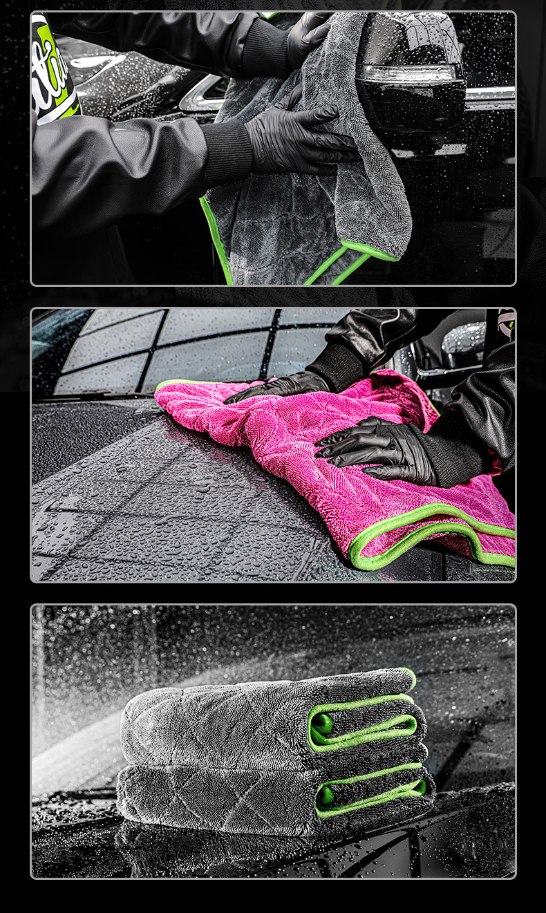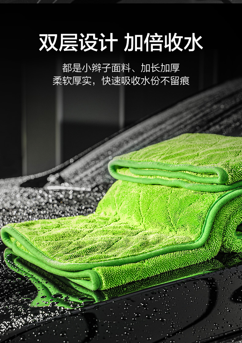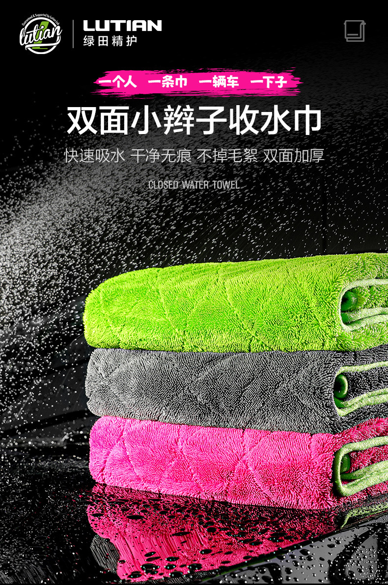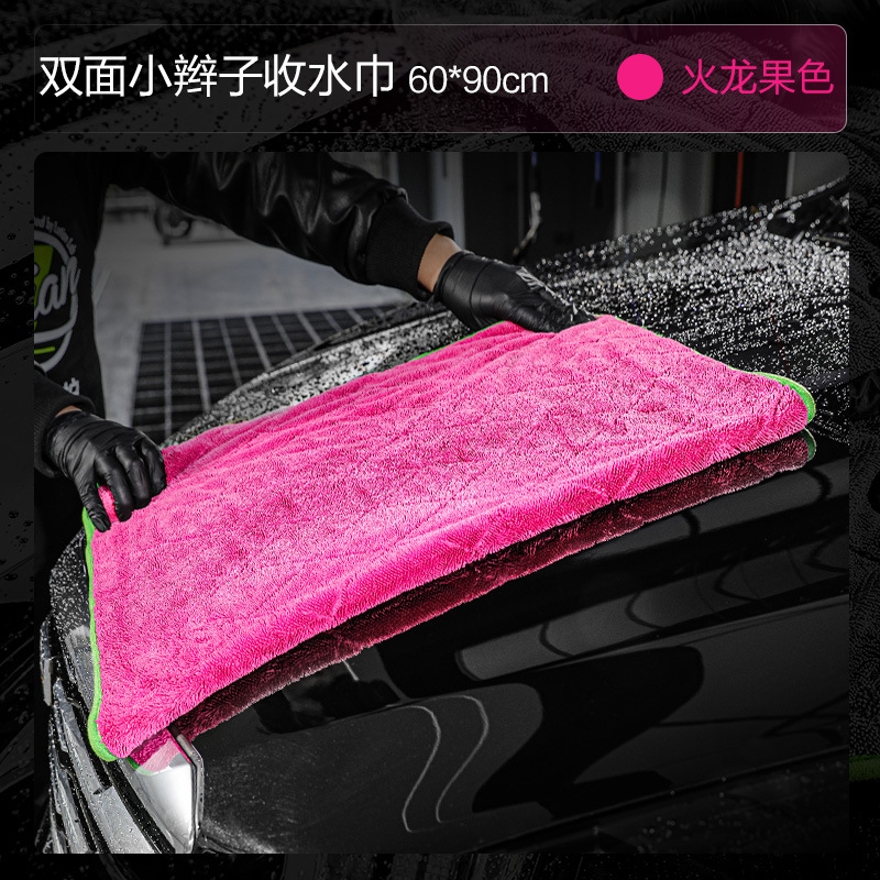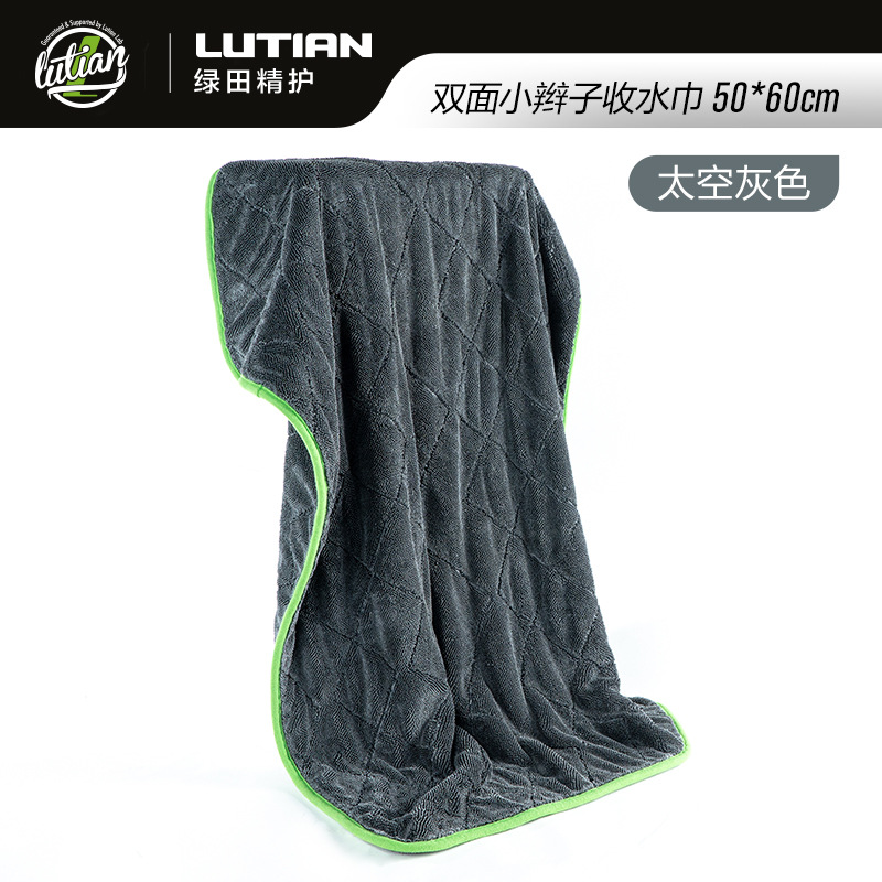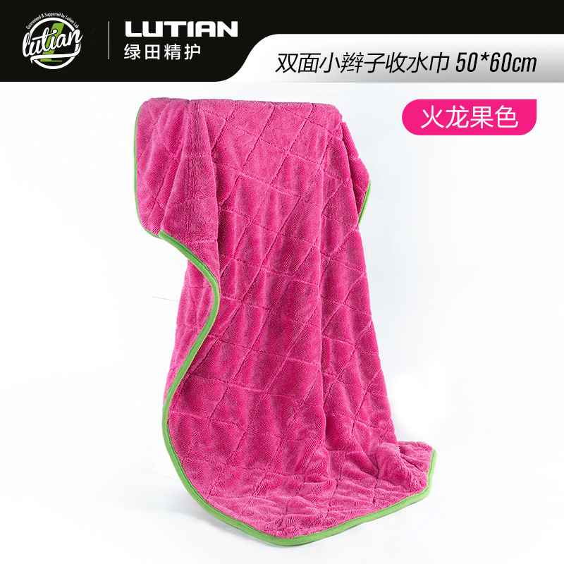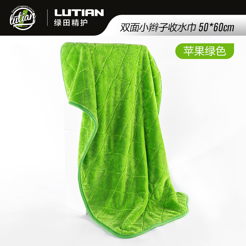 녹색 필드 양면 브레이드 물 수집 수건 자동차 린트 무료 자동차 세척 강한 흡수성 천 전문 용 과일 색상