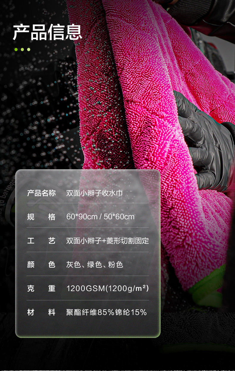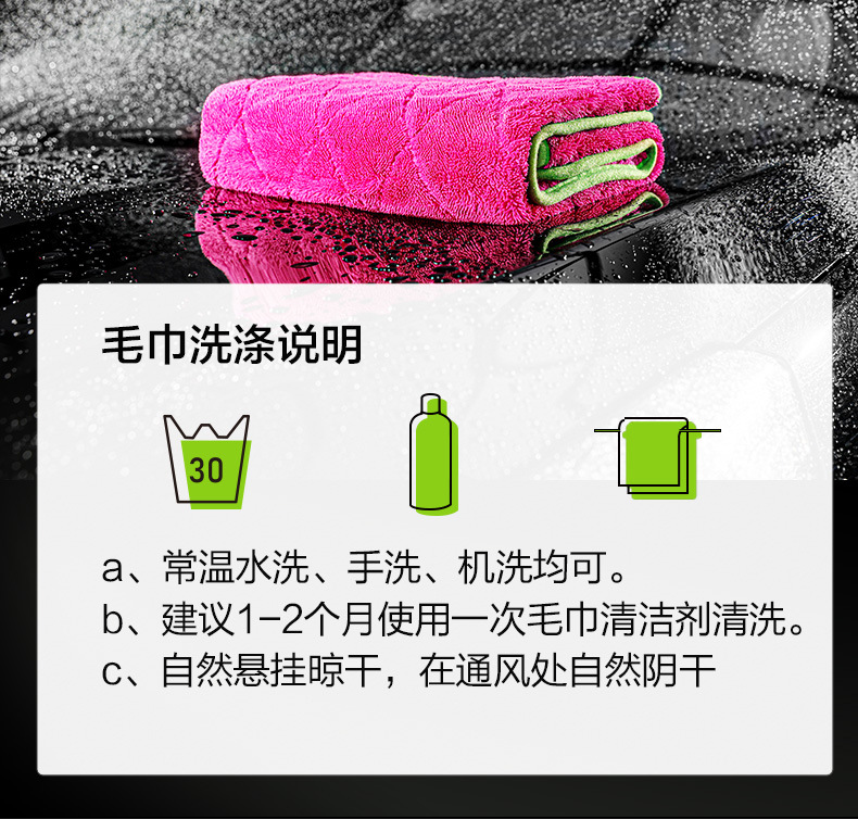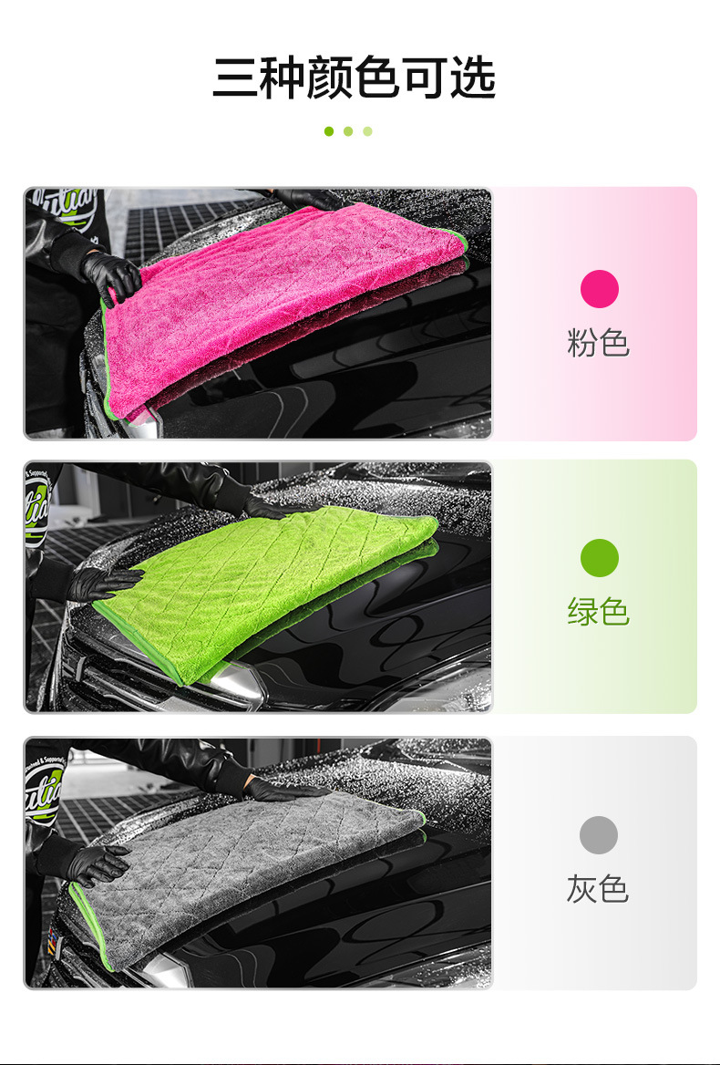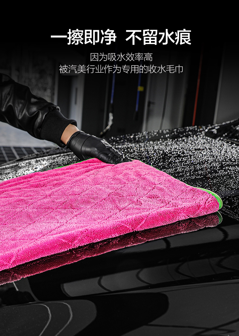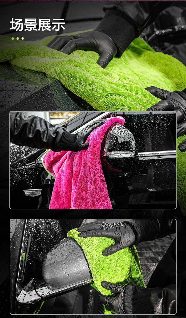 녹색 필드 양면 브레이드 물 수집 수건 자동차 린트 무료 자동차 세척 강한 흡수성 천 전문 용 과일 색상