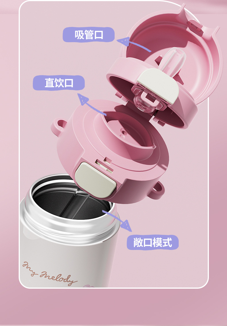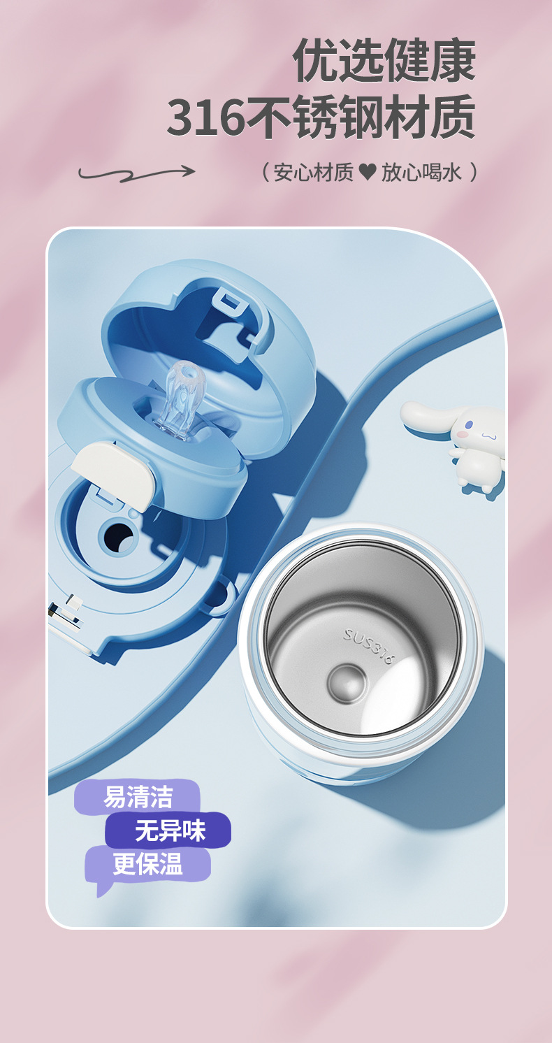 Sanrio Kulomi 어린이 보온병 두 배 음료 316 스테인레스 스틸 워터 컵 여자 및 초등학생을위한 특수 냄비