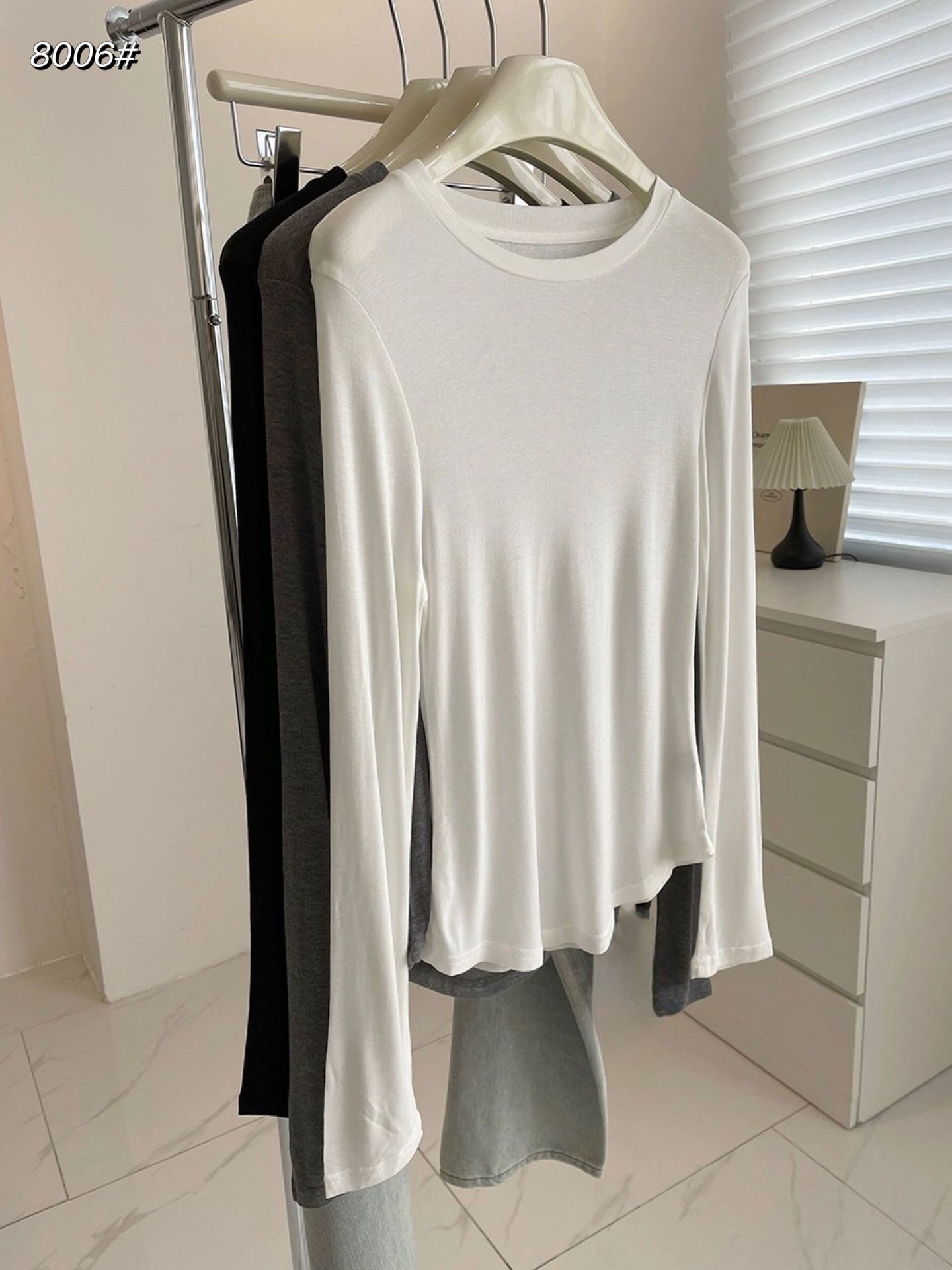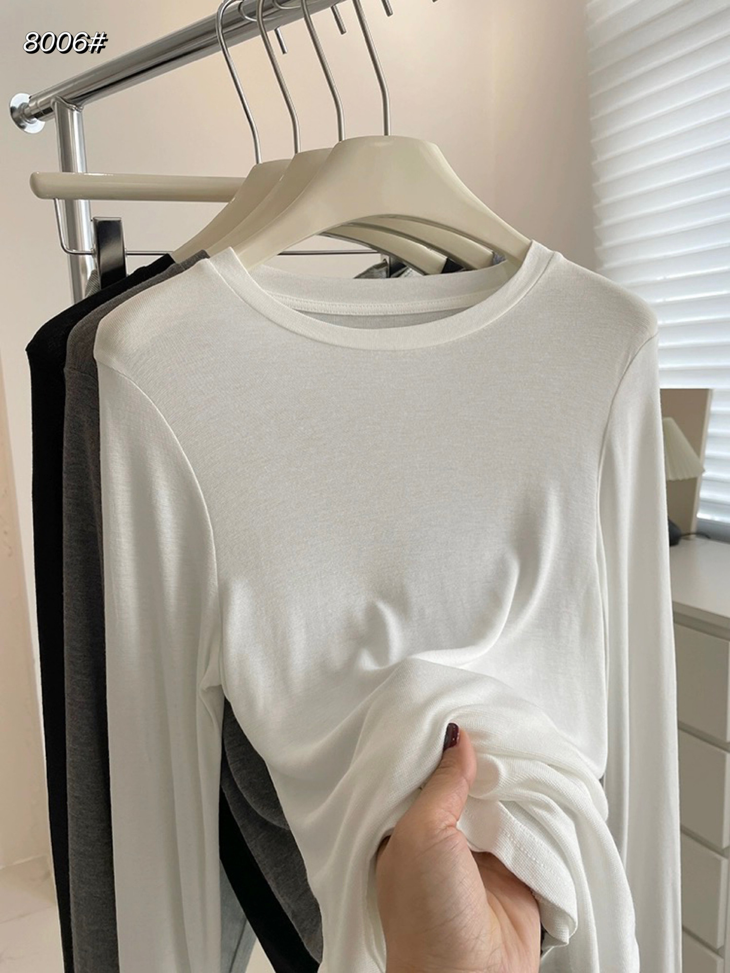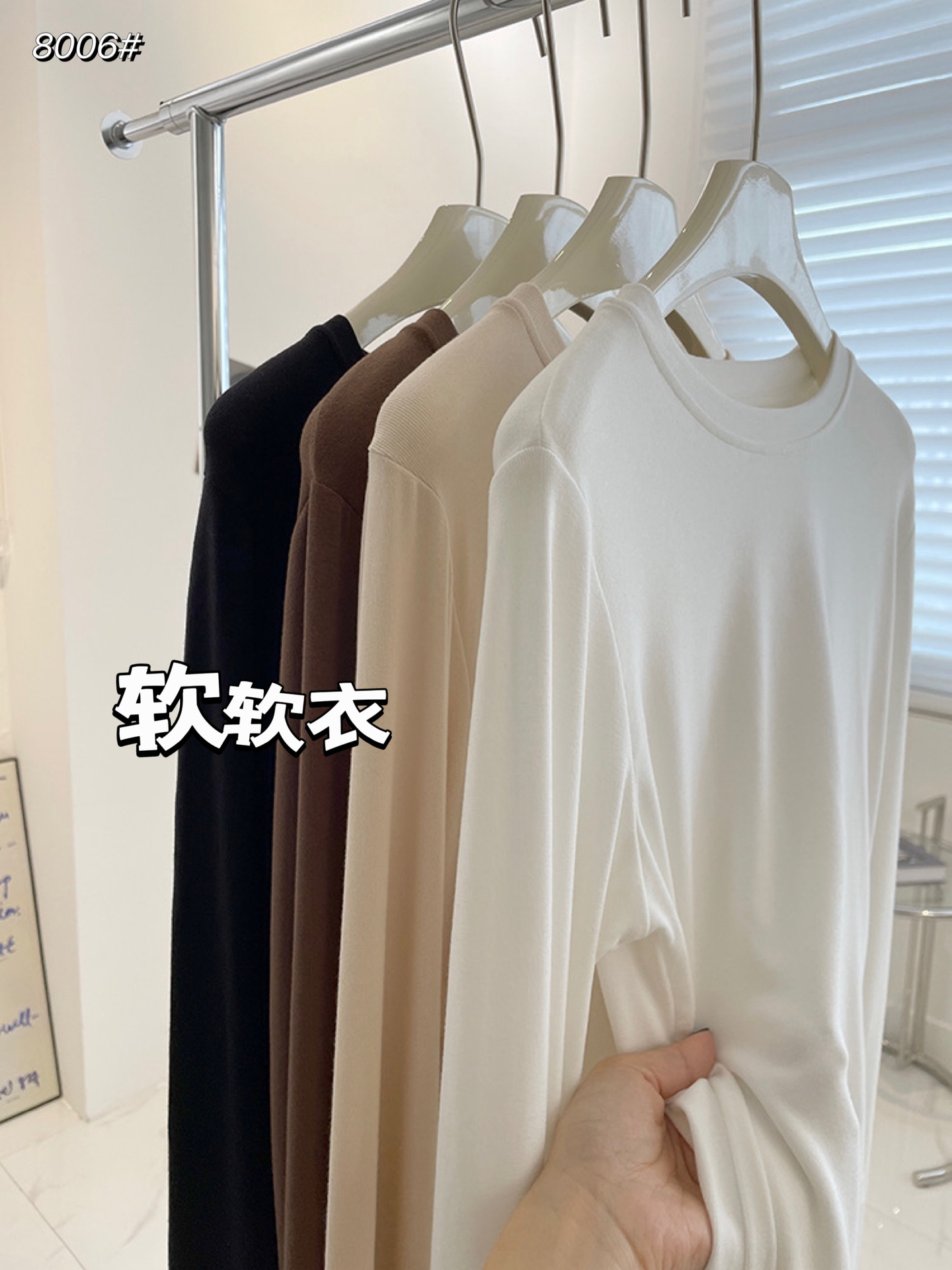 가을 신상 한국 스타일 여성용 솔리드 컬러 라운드넥 니트 스웨터, 피부 친화적이고 부드러우며 슬리밍 효과가 있는 베이스 레이어, 약간 투명하고 부드러운 옷스토어 가기