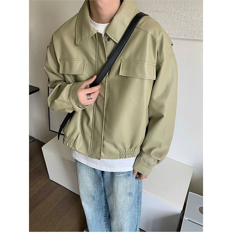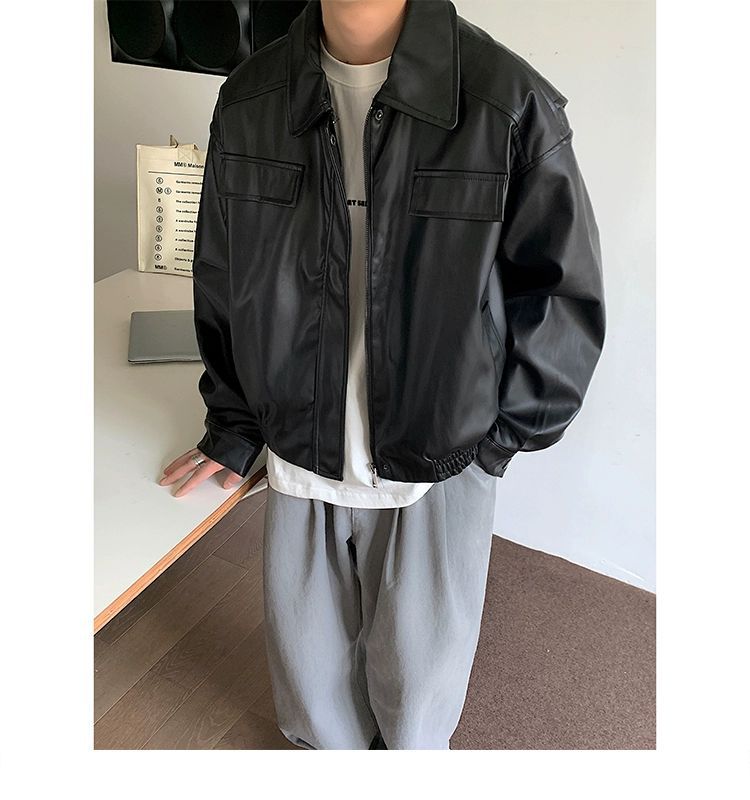 아메리칸 스타일 레트로 오토바이 가죽 자켓 남자의 가을 2023 새로운 디자인 센스 틈새 느슨한 트렌디 브랜드 PU 가죽 자켓스토어 가기
