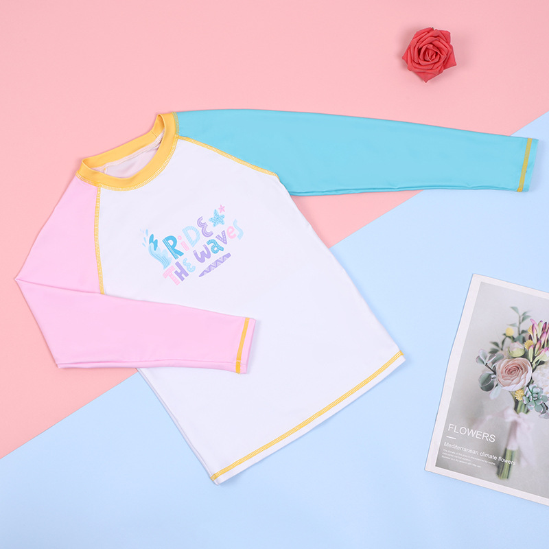 어린이 분할 수영복 세트 소녀의 태양 보호 빠른 건조 패션 컬러 매칭 서핑 미들 및 빅 키즈스토어 가기