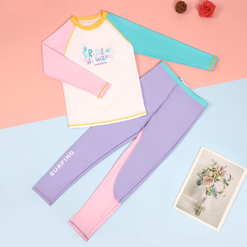 어린이 분할 수영복 세트 소녀의 태양 보호 빠른 건조 패션 컬러 매칭 서핑 미들 및 빅 키즈