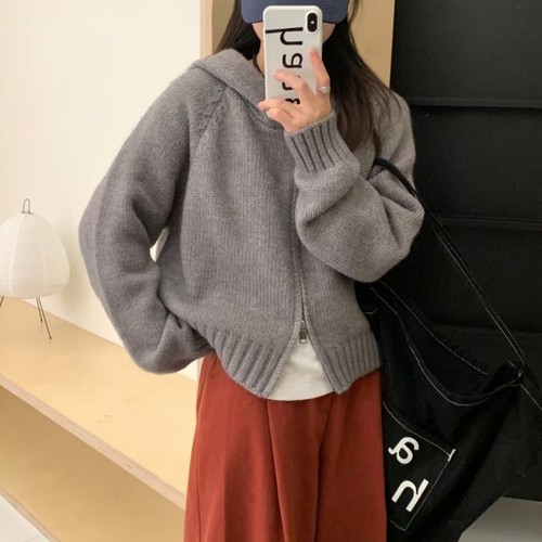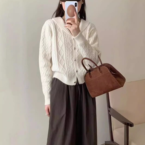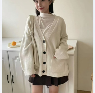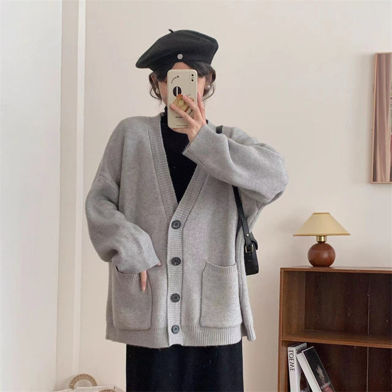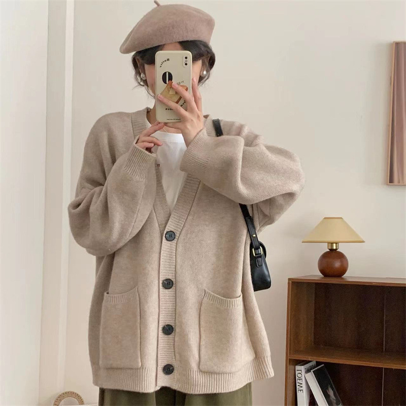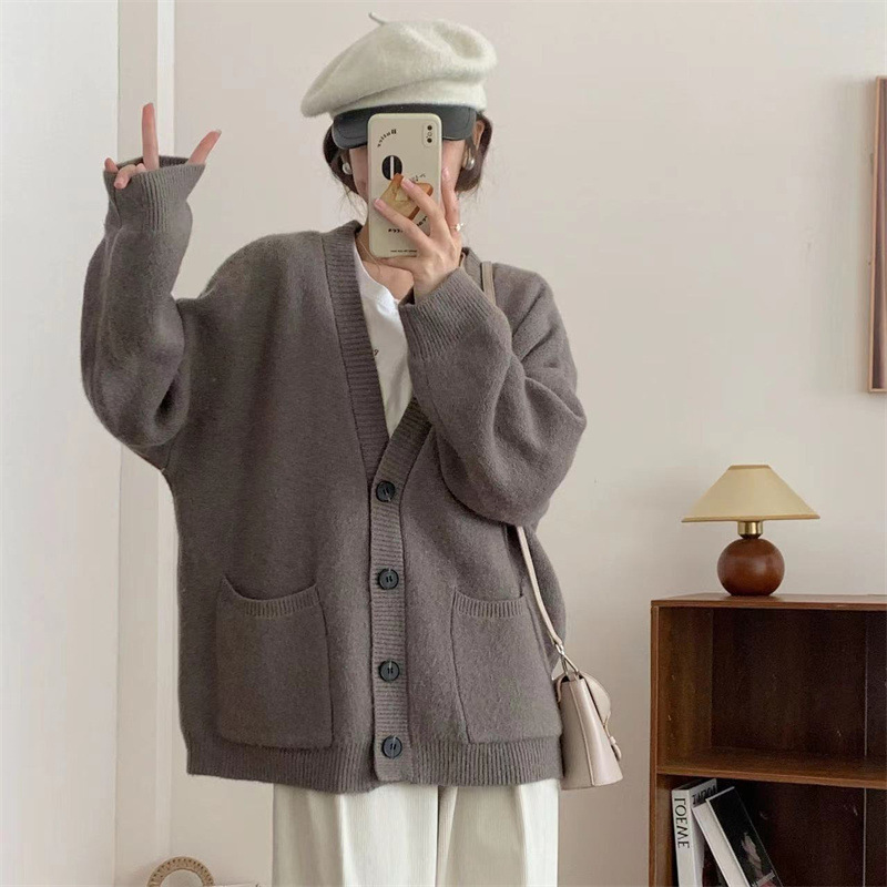 플러스 사이즈 여성용 레트로 스웨터 코트 여성용 가을 및 겨울 새로운 소프트 왁스 게으른 스타일 V-Neck 니트 카디건 탑