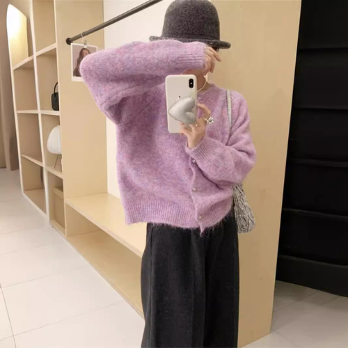 플러스 사이즈 여성용 레트로 스웨터 코트 여성용 가을 및 겨울 새로운 소프트 왁스 게으른 스타일 V-Neck 니트 카디건 탑스토어 가기