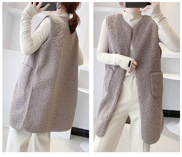 긴 조끼 여성의 가을과 겨울 중간 긴 모방 어린 양 따뜻한 클립 유행 새로운 스타일 유행 유행 여성 자켓스토어 가기