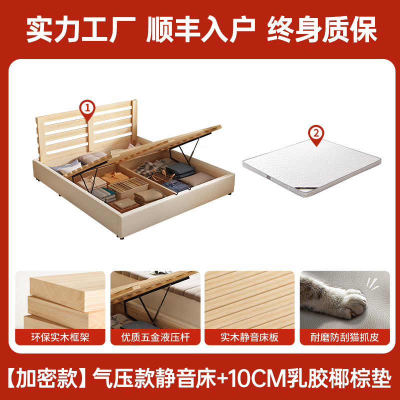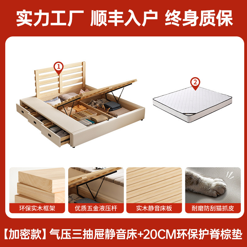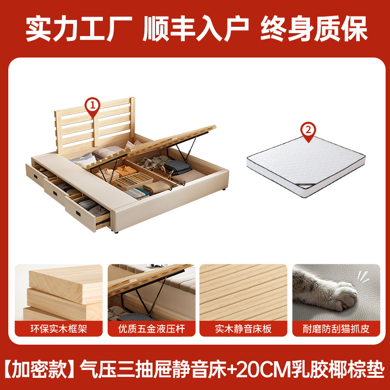 • [암호화된 모델] 공기압식 3단 서랍 사일런트 침대 + 20cm 라텍스 코코넛 야자 매트