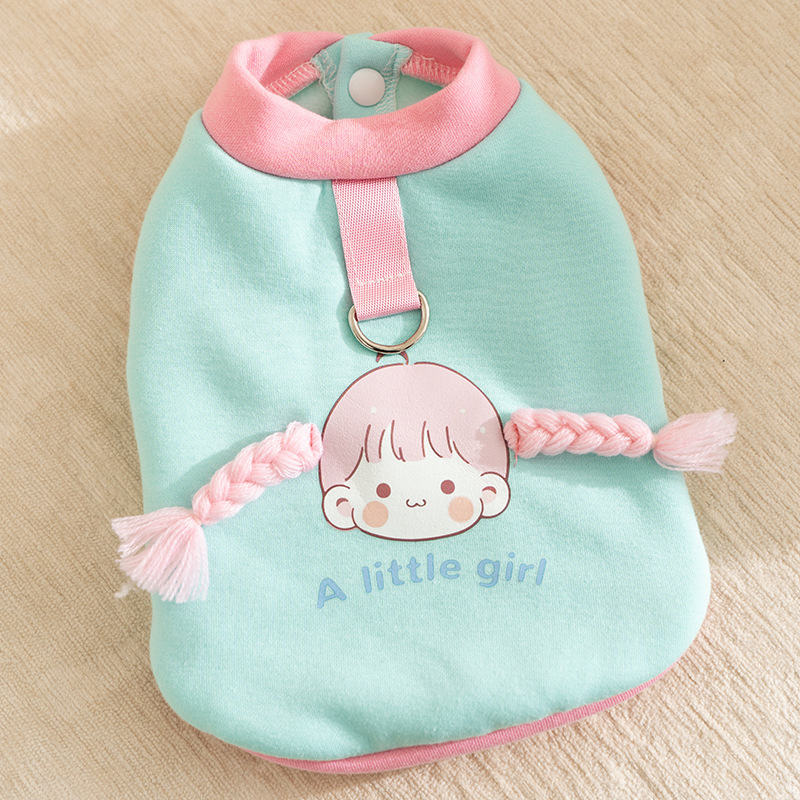 24년 신상 가을 겨울 강아지 옷, 두 발 입은 형태의 입체적인 디자인, 여자아이 스타일, 땋은 머리, 소형견 애완견 옷 도매