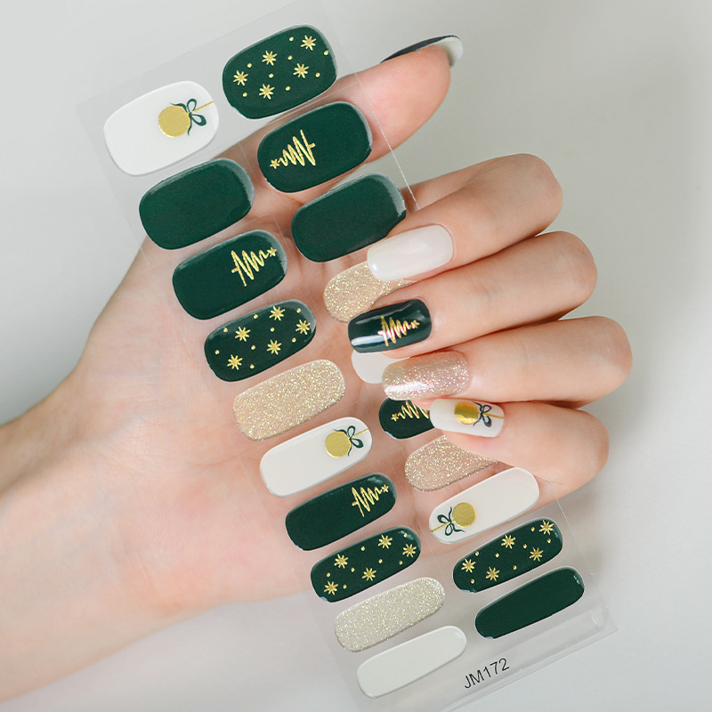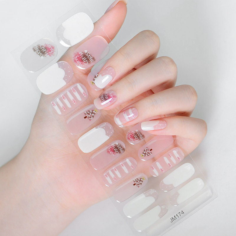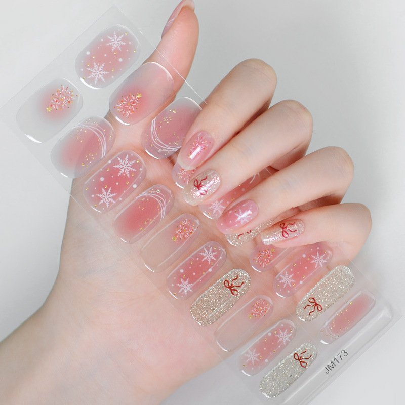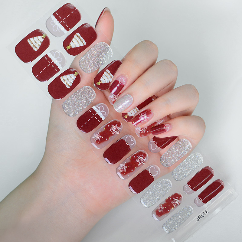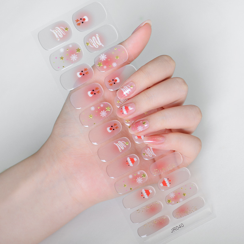 크리스마스 스타일 네일 스티커 국경 간 뜨거운 제조 업체 재고 반 구운 젤 네일 스티커 2 세대 절반 경화 네일 스티커스토어 가기