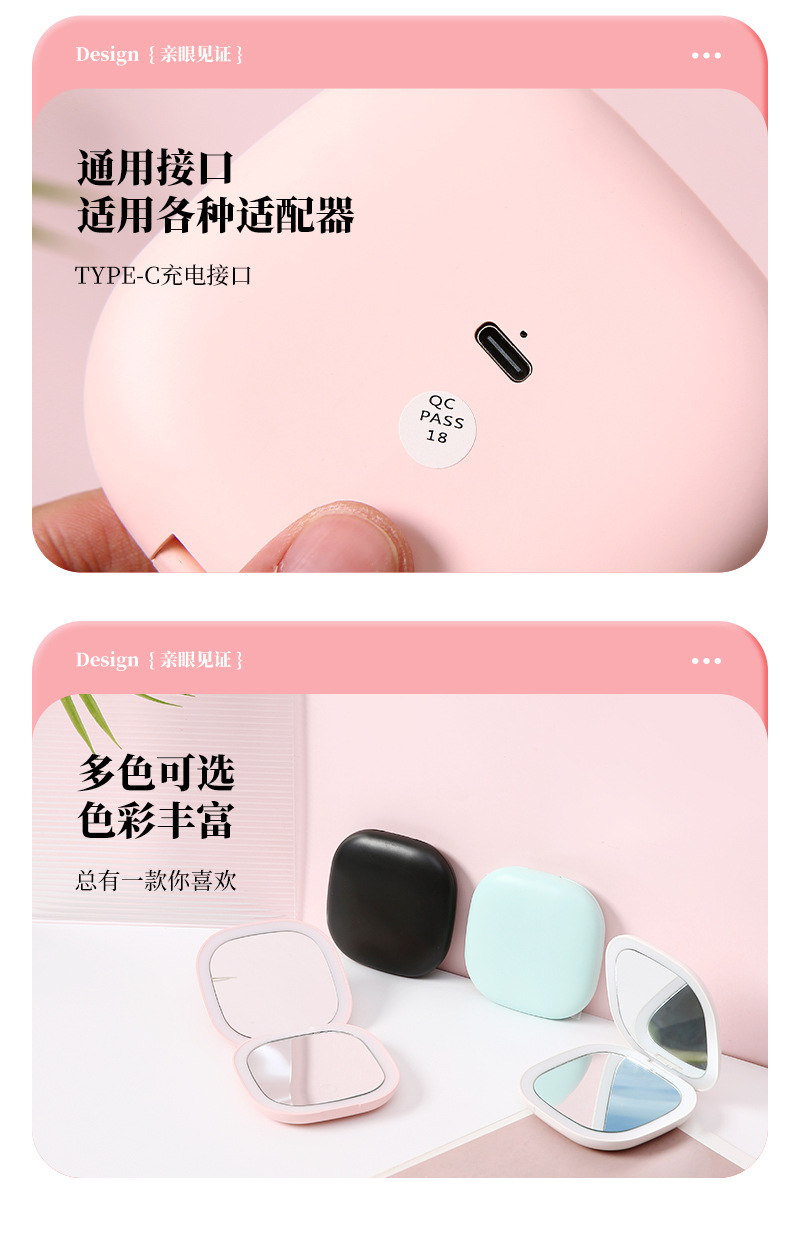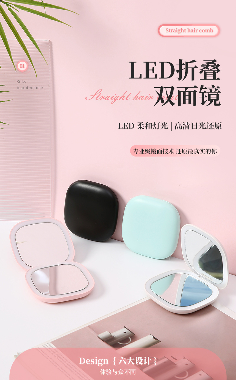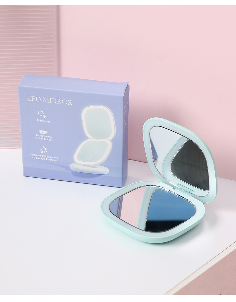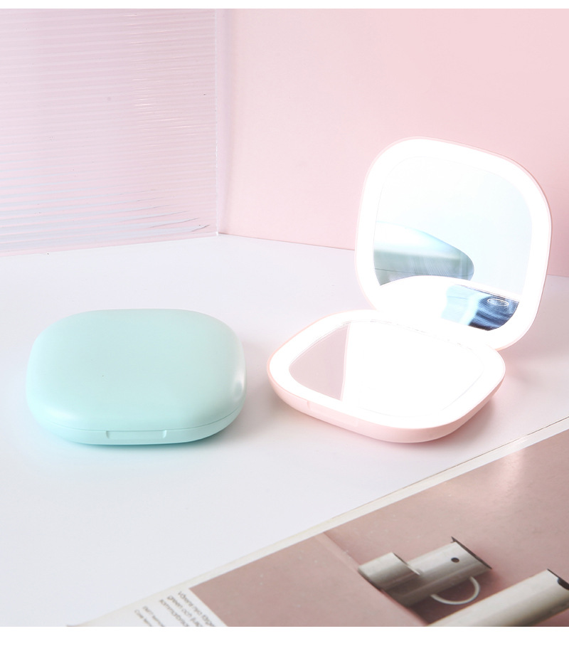 휴대용 Led 라이트 폴딩 메이크업 미러 휴대용 라이트 스몰 사이즈 메이크업 미러 양면 충전식 메이크업 미러스토어 가기
