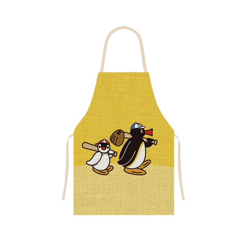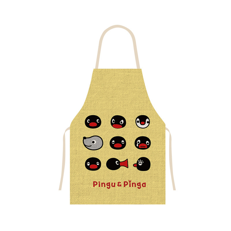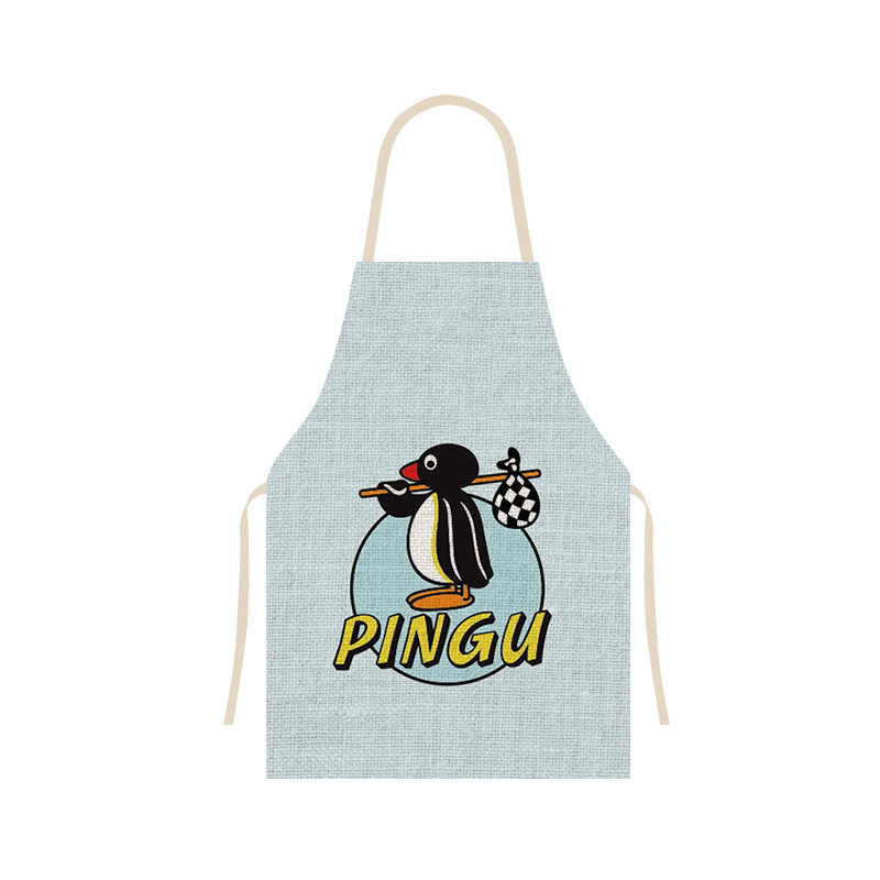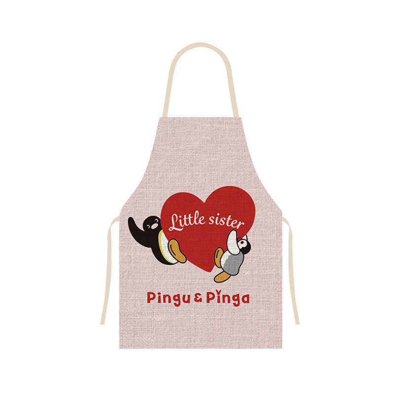 펭귄 가족 핑구 귀여운 주방 가정 요리 앞치마 통기성 리넨 베이킹 커피 숍 작업 옷스토어 가기
