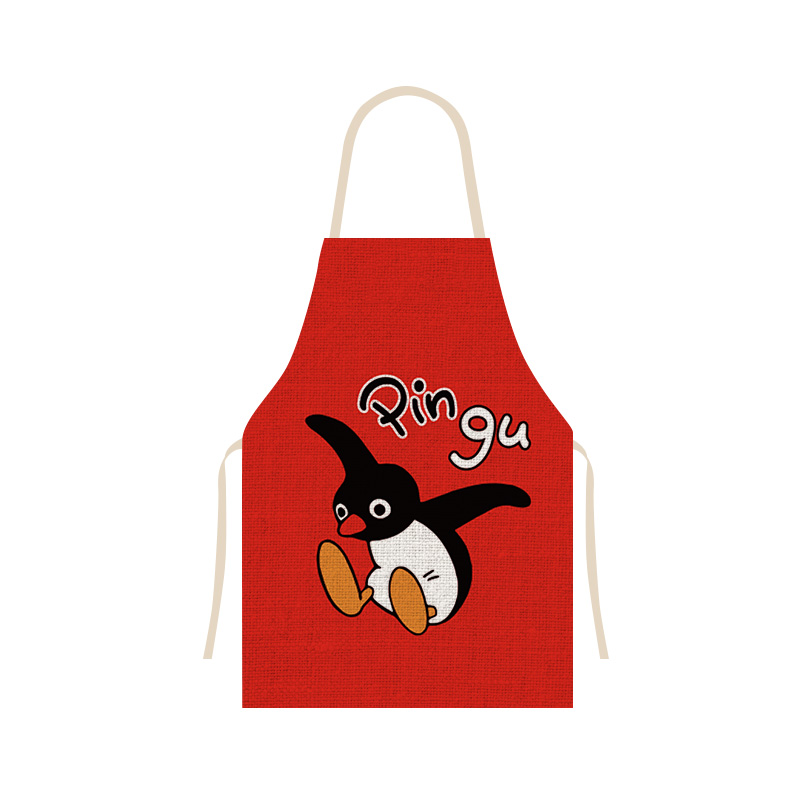 펭귄 가족 핑구 귀여운 주방 가정 요리 앞치마 통기성 리넨 베이킹 커피 숍 작업 옷