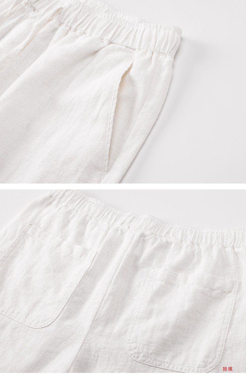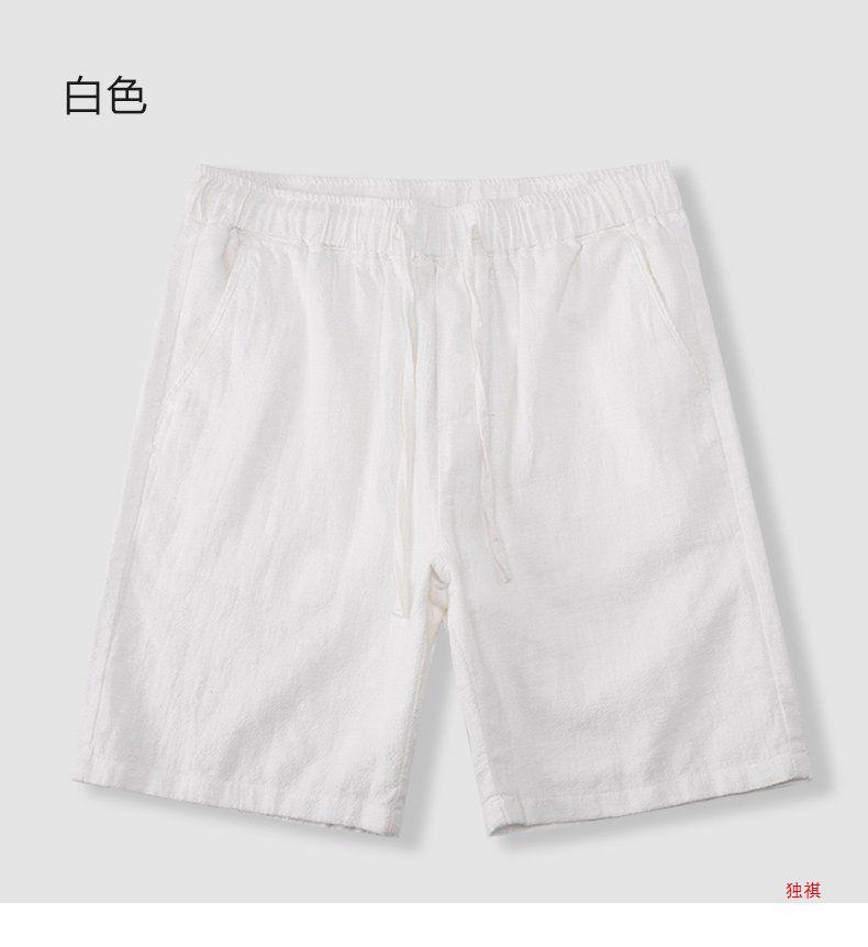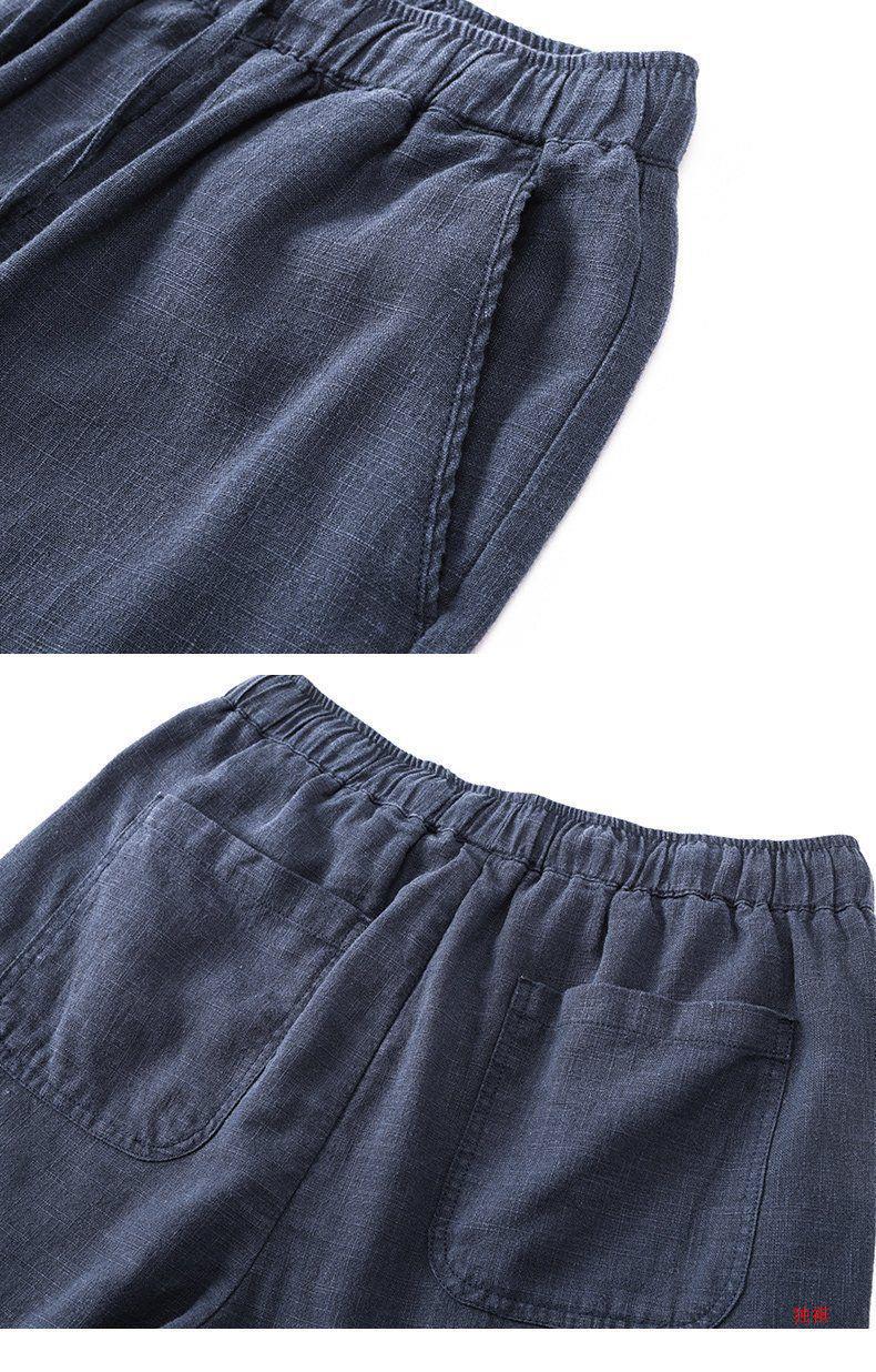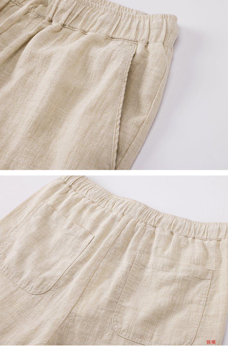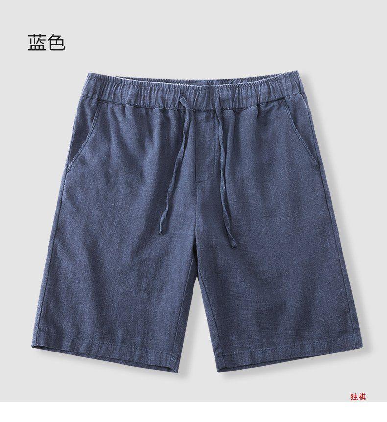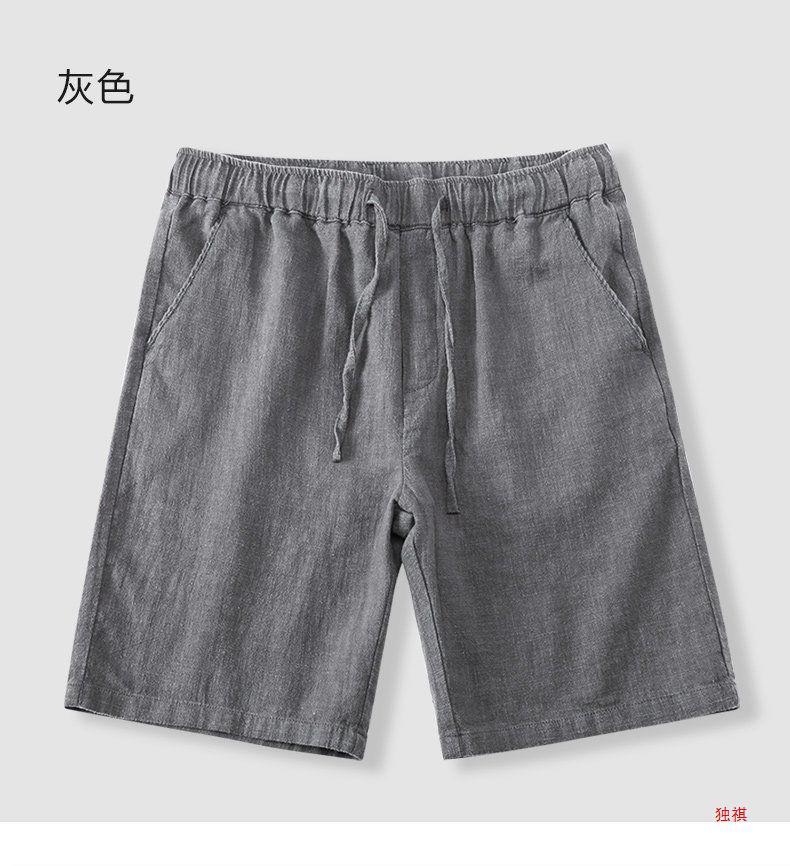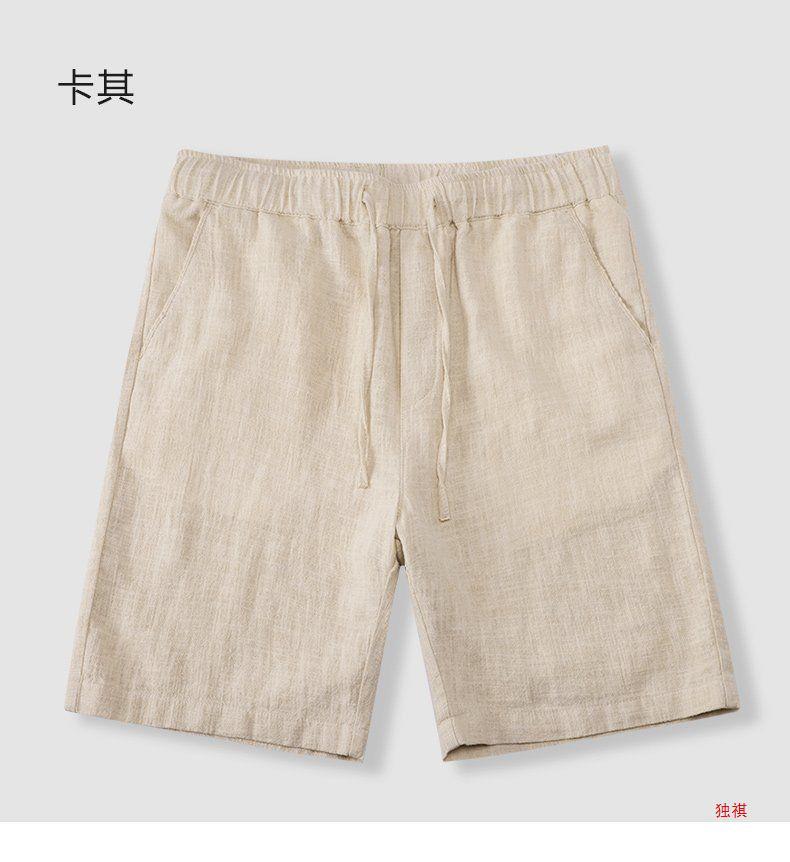 여름 얇은 카키 면 및 리넨 바지 남성용 단색 느슨한 스트레이트 엘라스토탄성 허리 라미 비치 캐주얼 반바지스토어 가기