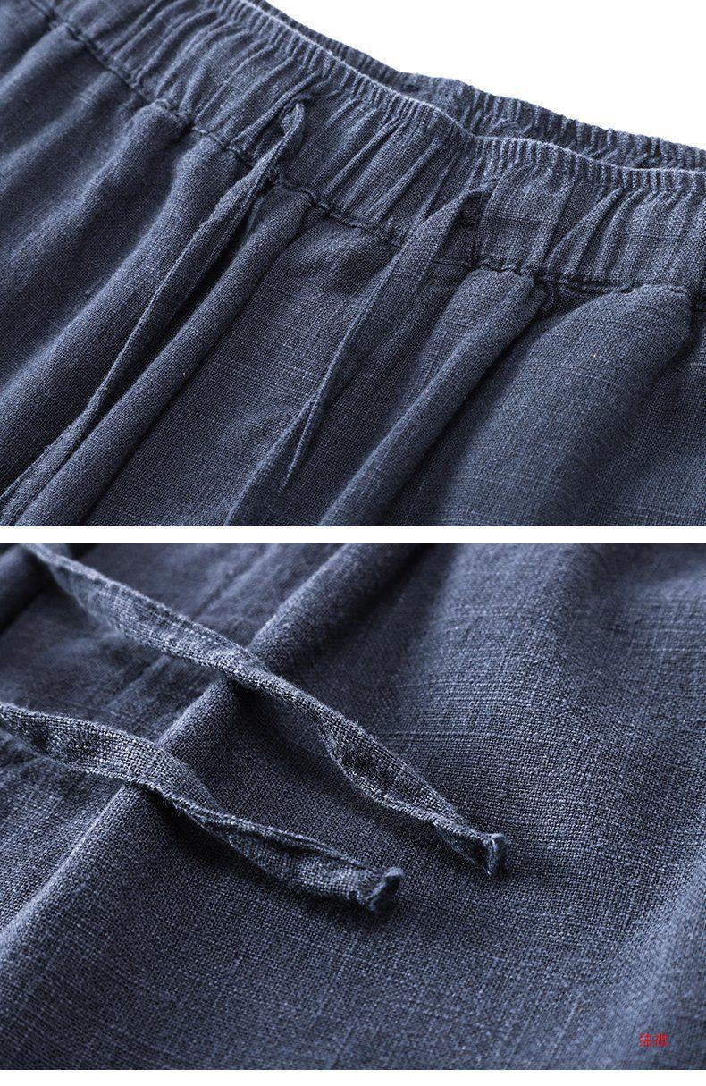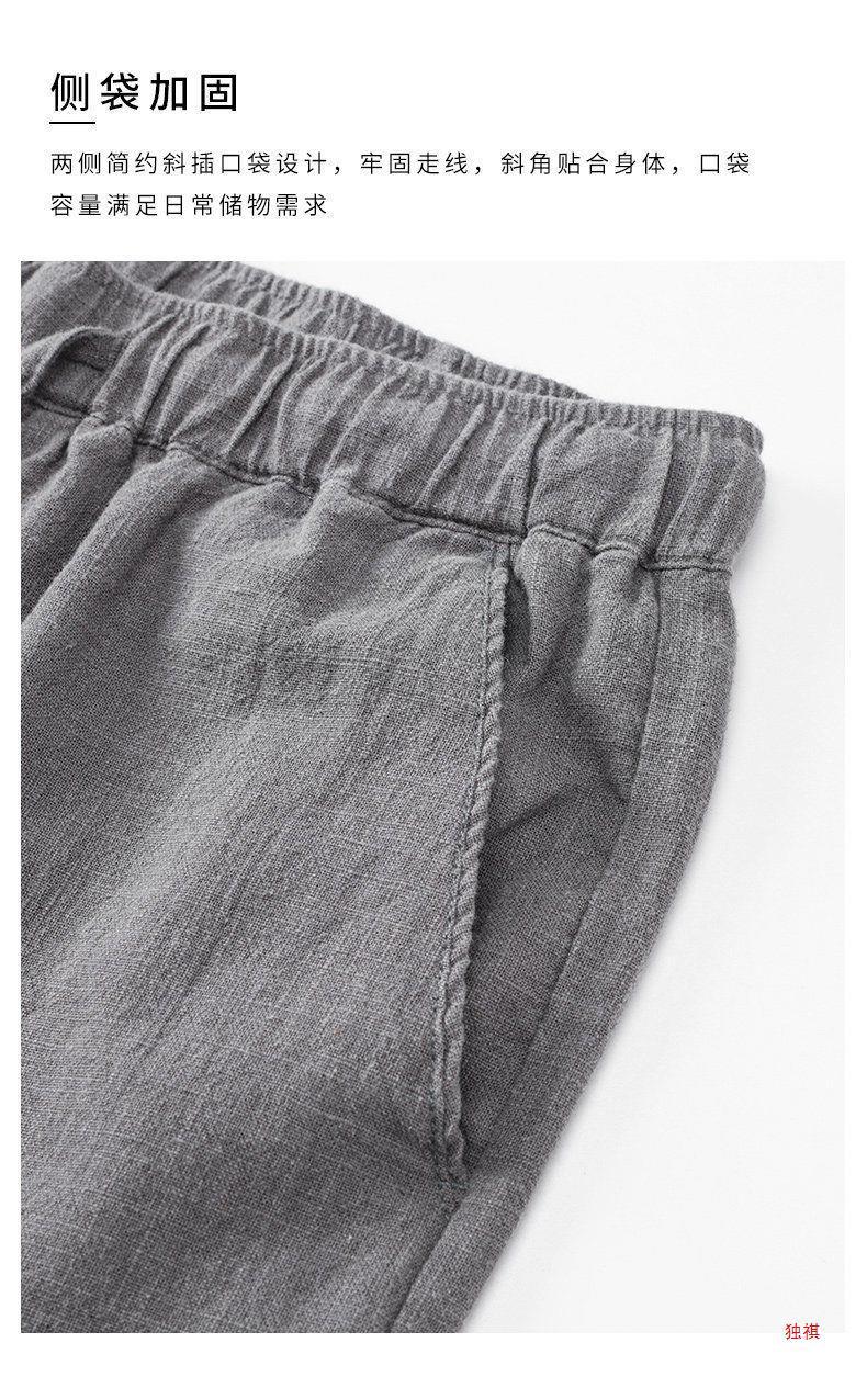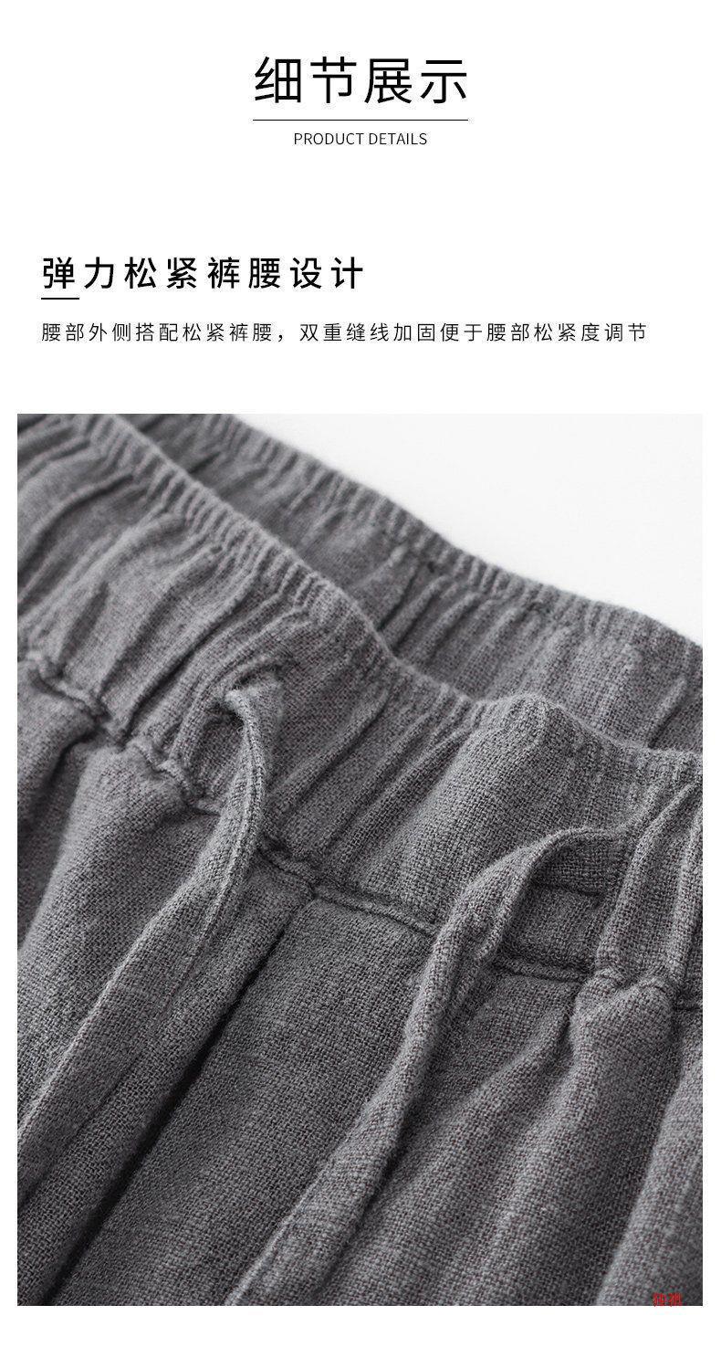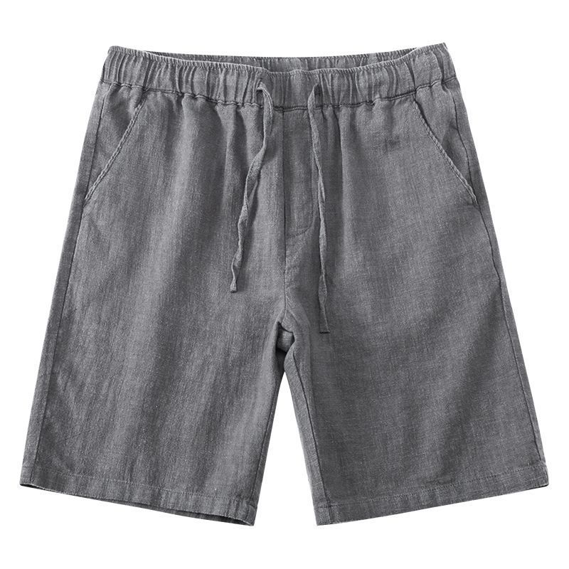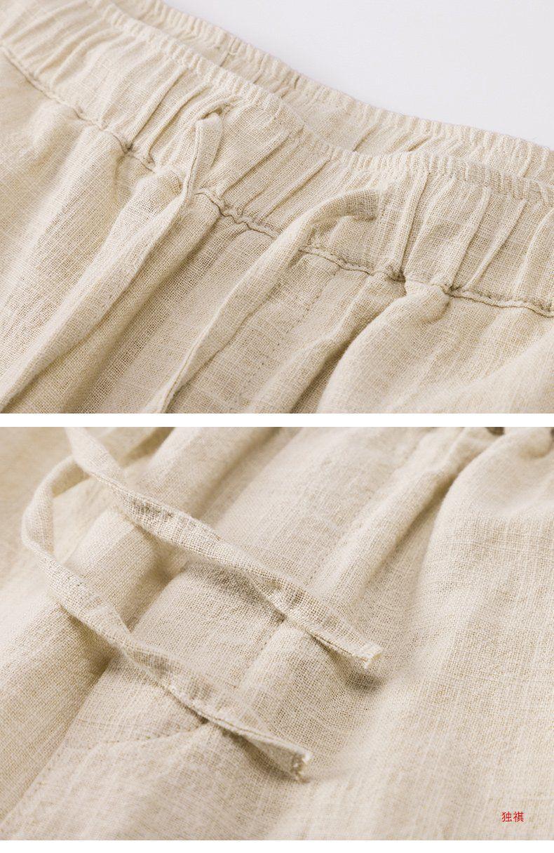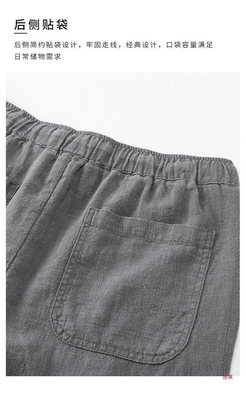 여름 얇은 카키 면 및 리넨 바지 남성용 단색 느슨한 스트레이트 엘라스토탄성 허리 라미 비치 캐주얼 반바지스토어 가기
