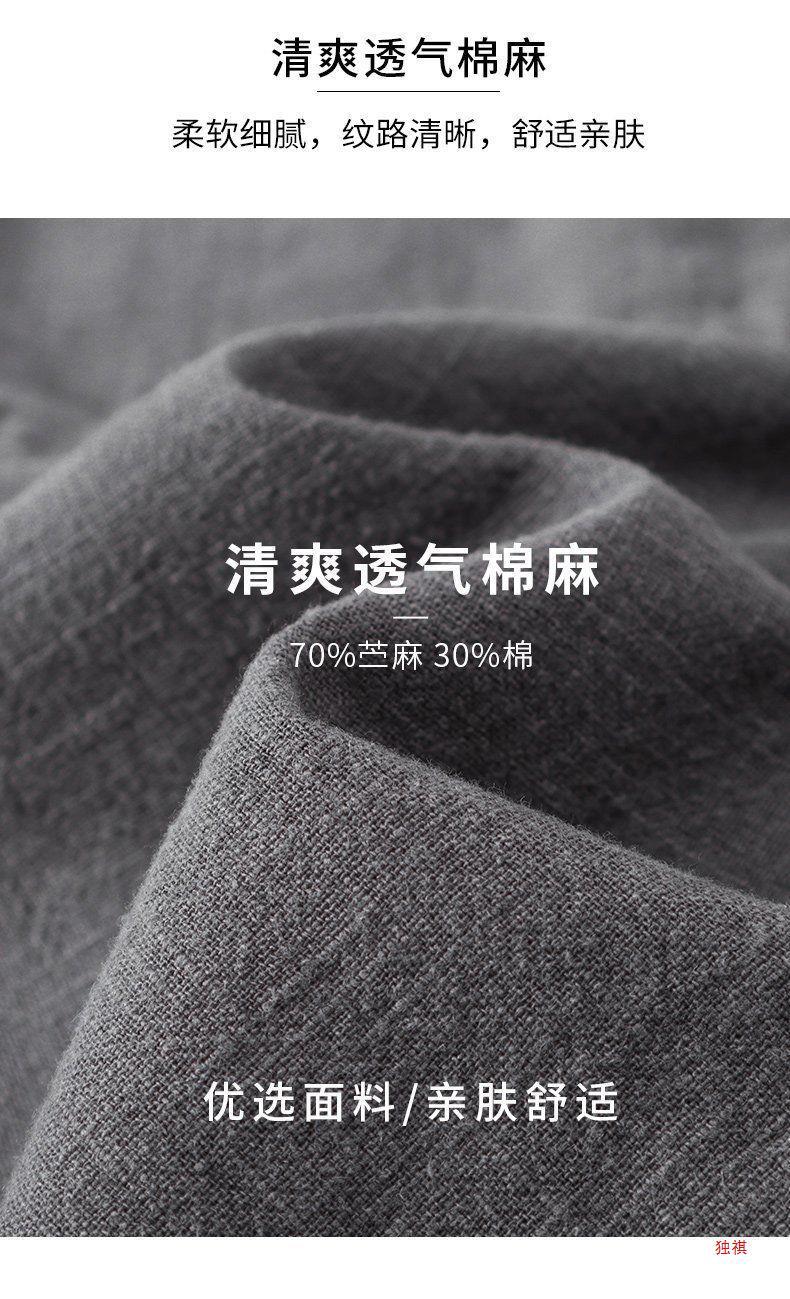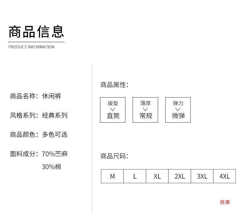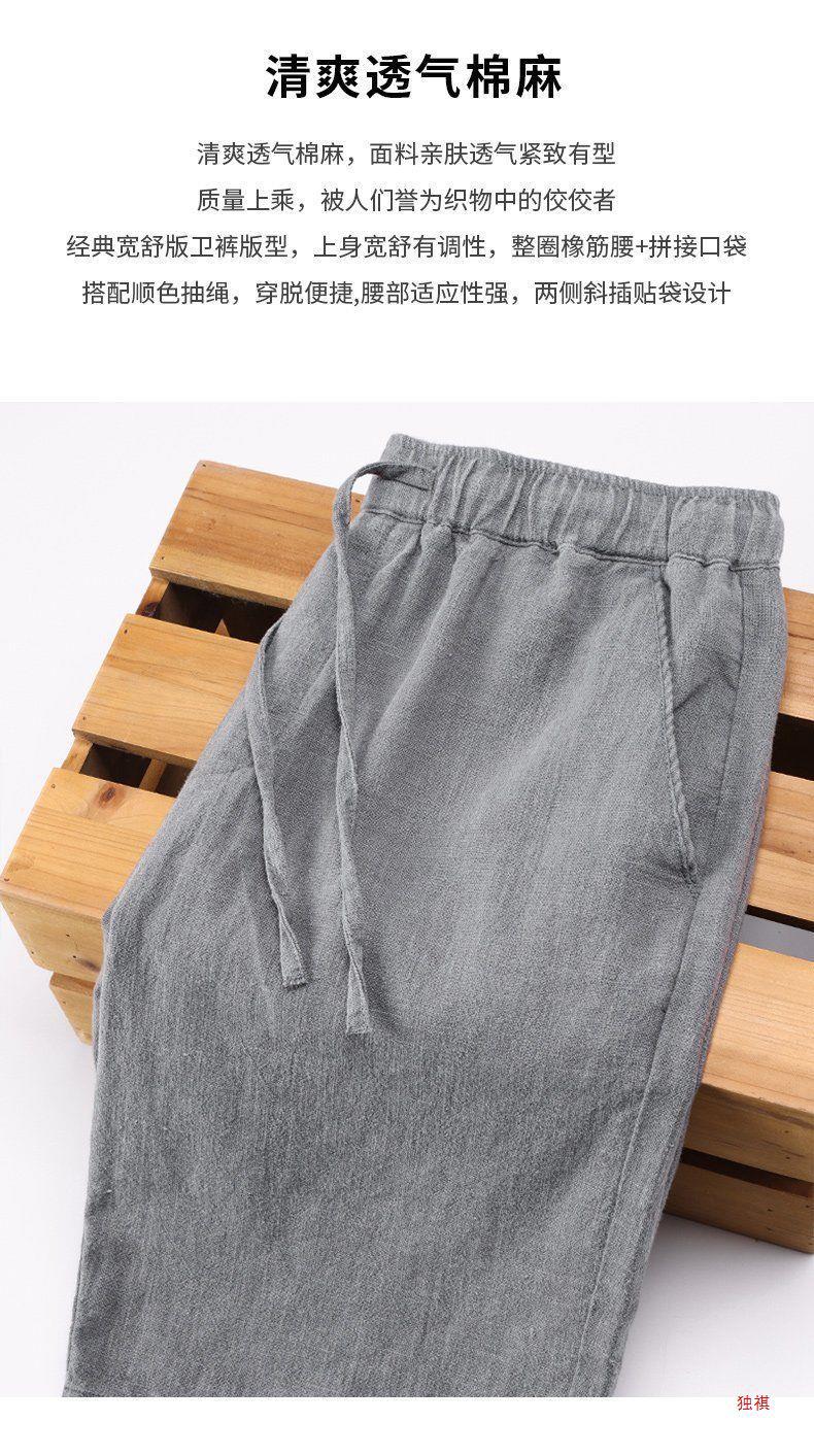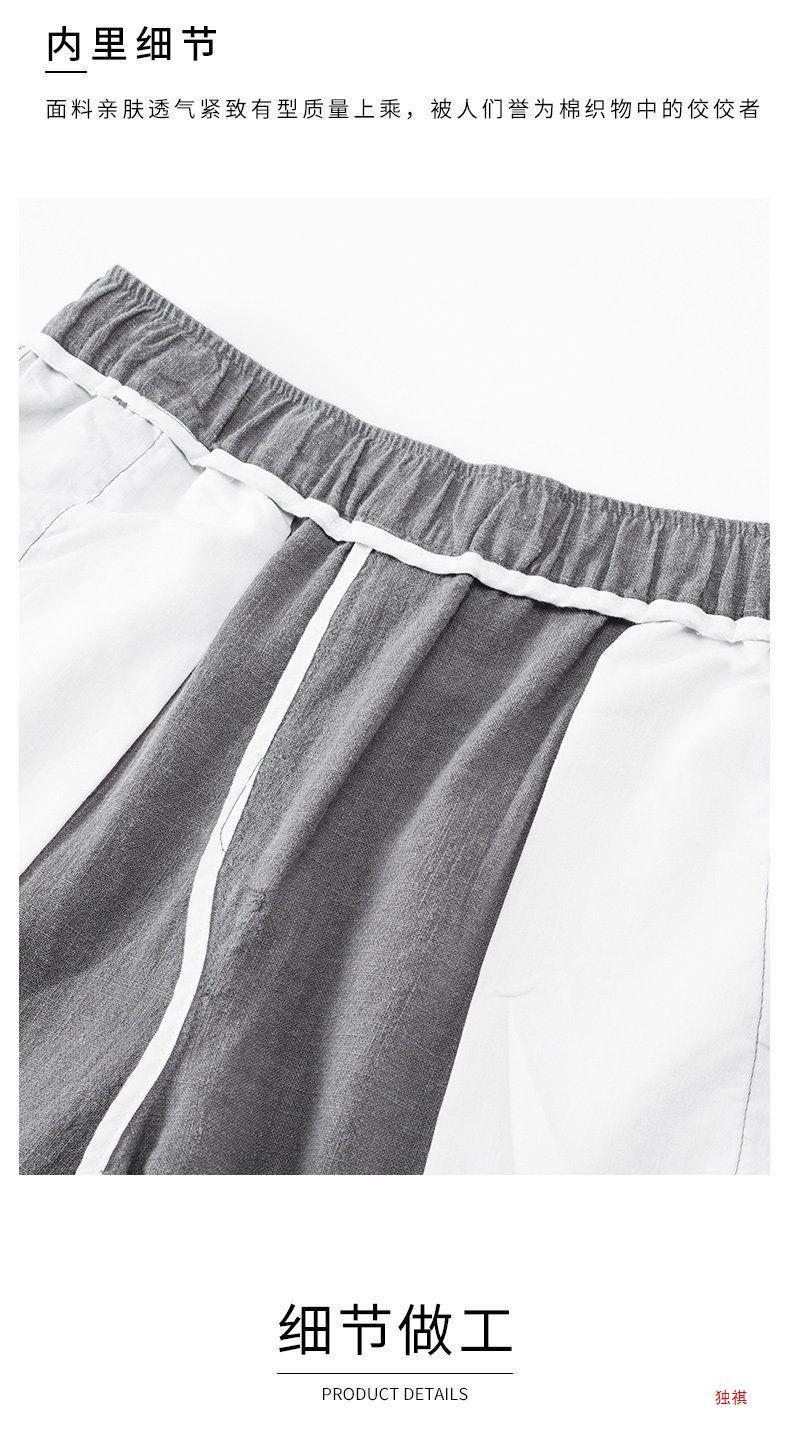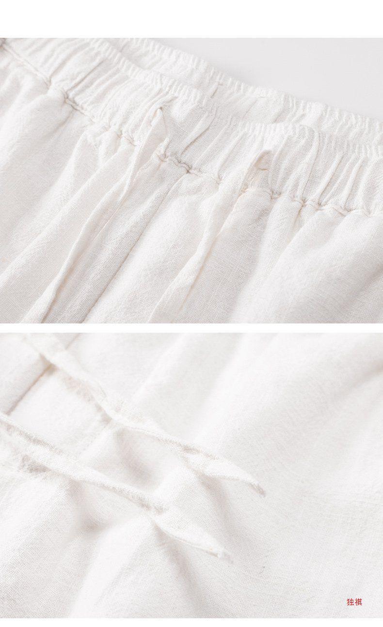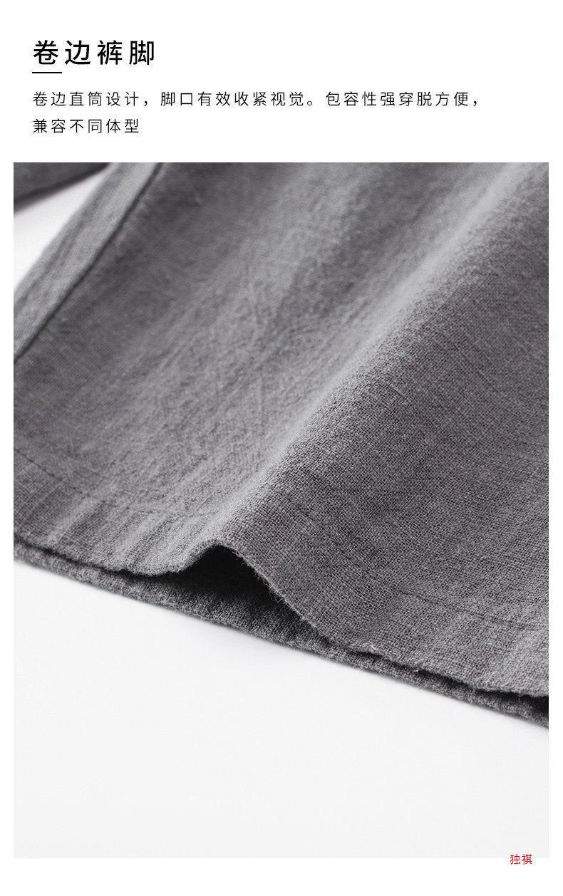여름 얇은 카키 면 및 리넨 바지 남성용 단색 느슨한 스트레이트 엘라스토탄성 허리 라미 비치 캐주얼 반바지스토어 가기