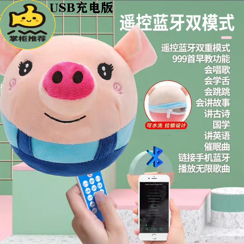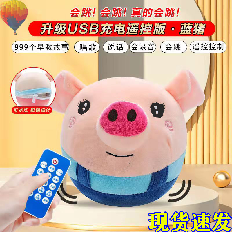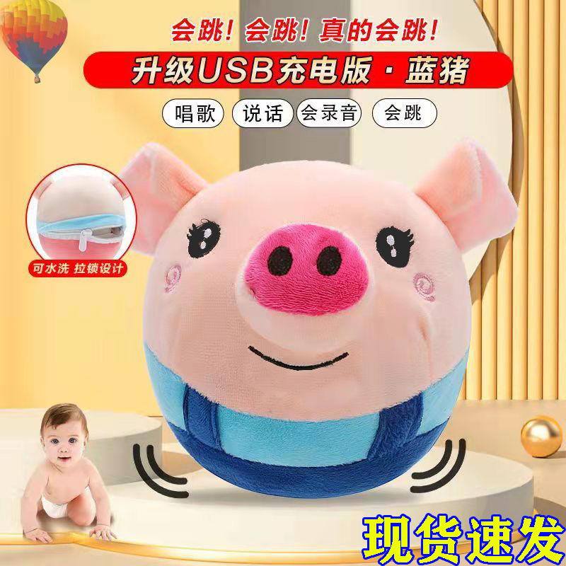 사이버 축하 점프 돼지 장난감 이야기 어린이 소녀 소년 음악 점프 볼 아기 플러시 점프 배우기